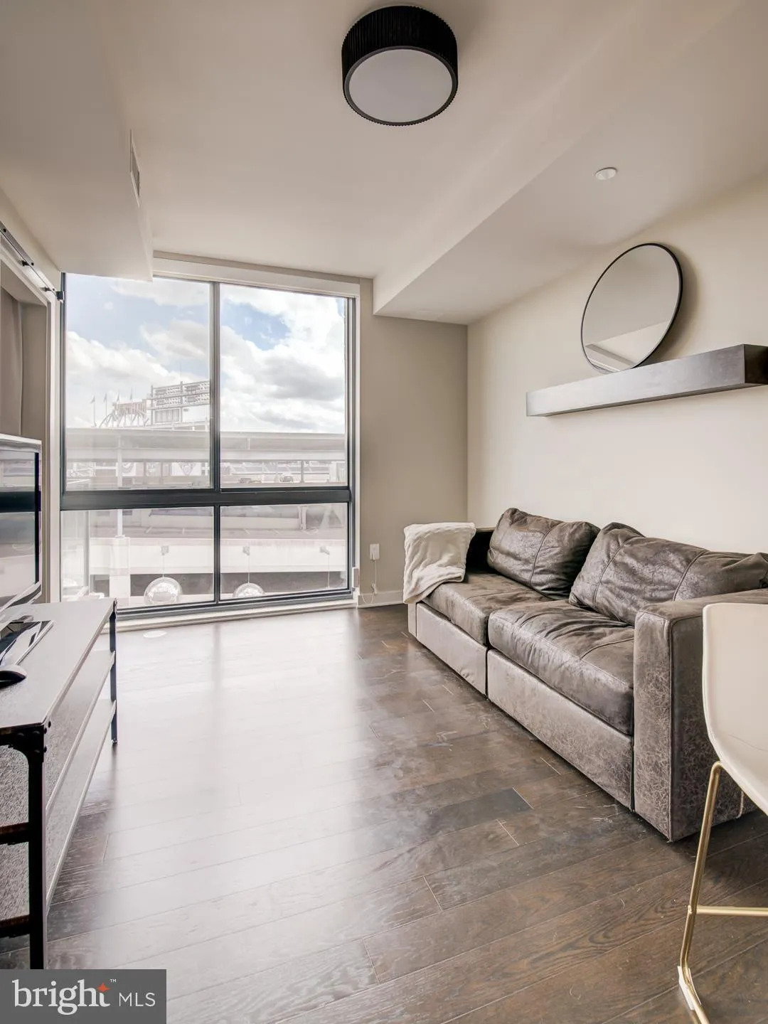 Furnished ! Make the Navy Yard your home ! This large fantastic fully furnished condo is on the 6th floor with views of the Nationals Park ! The unit features luxury flooring, stainless steel appliances, quartz countertops, a large living room dining room space, large bedroom, a private balcony, huge walk-in closet, extra storage, black out window shades, a custom peninsula, an in-unit washer and dryer and parking is available for rent with a free EV charger. The building amenities include a workout facility, Zen garden, roof top patio with grills, fire pits, a huge party room with plenty of entertaining space, 24 -7 attended front desk, and so much more. This great home is in the middle of the nightlife, restaurants, and other attractions in the Navy Yard area. Tour Today!
