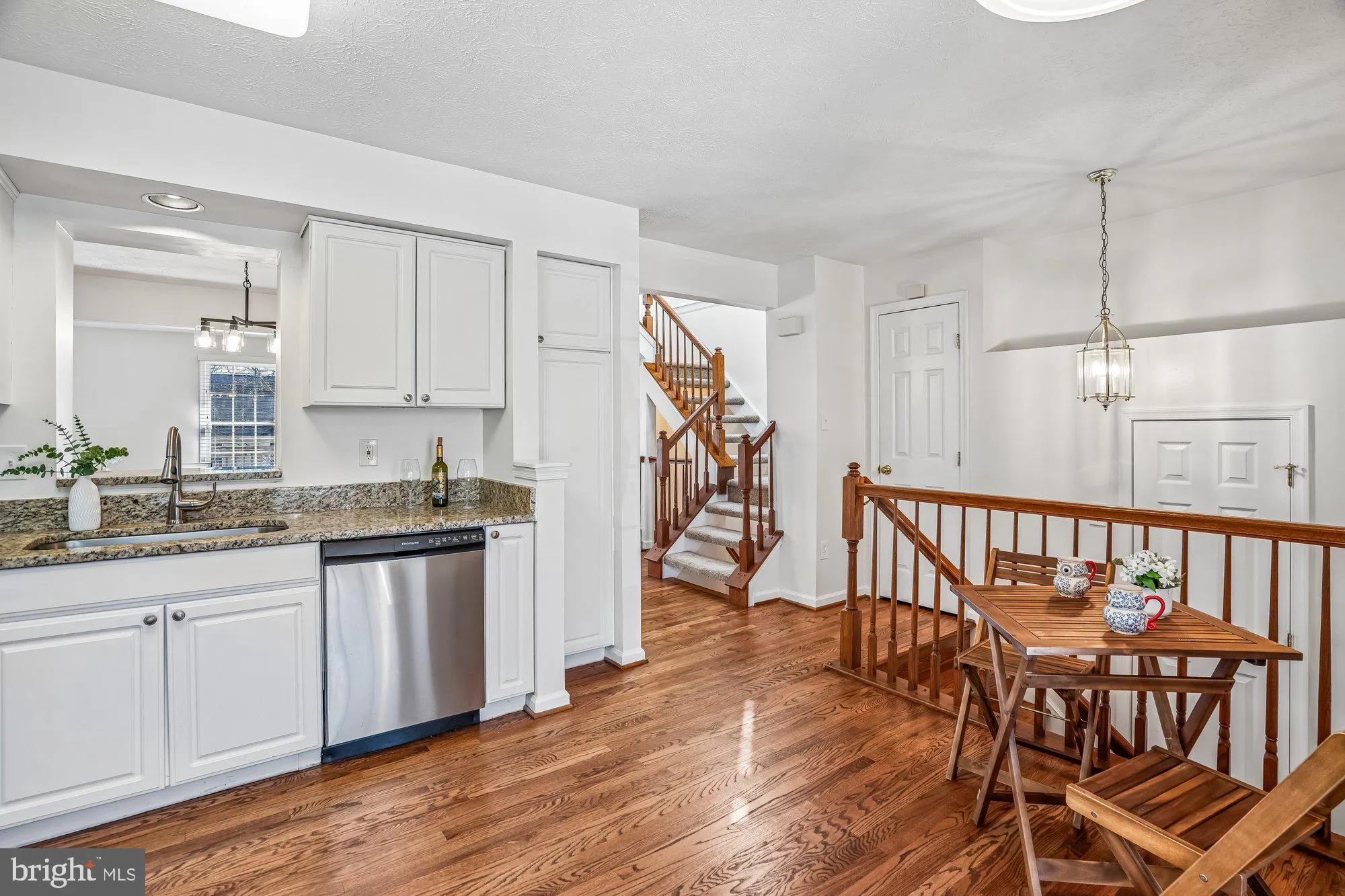 Located in the sought-after community of Dorsey Search, this beautiful brick front, end-unit townhome features updates, a one-car garage with driveway, and views of the scenic Fairway Hills Golf Course. Spanning three finished levels, this 3-bedroom, 2.5-bath home features gleaming hardwood floors throughout the kitchen, living, and dining rooms, along with brand-new vinyl flooring in all bathrooms. New plush carpeting enhances the bedrooms, stairways, and lower level recreation room, creating a fresh and inviting feel throughout. The updated modern kitchen shines with granite countertops, white cabinetry, stainless steel appliances, built-in microwave, recessed lighting, and space for a table. The open-concept layout flows seamlessly into the dining area, highlighted by a contemporary light fixture, and continues into the spacious living room, where French doors lead to a large deck—perfect for relaxing or entertaining outdoors. Upstairs, the generous primary suite offers a walk-in closet plus a second closet, a modern ceiling fan, and a private en-suite bath featuring a double vanity, walk-in shower, and soaking tub. Two additional bedrooms, a linen closet, and a well-appointed second full bath with a tub / shower combination and vanity with storage complete the upper level. The inviting lower level family room with recessed lighting is anchored by a charming brick-surround wood burning fireplace and provides direct access through a French door to a covered brick paver patio. Additional highlights include open green space adjacent to the home, an Electric Vehicle outlet in the garage, and a newer electric panel. Ideally located with easy access to I-95, Routes 32 and 29, this home is just minutes from shopping, dining, and entertainment. Residents enjoy nearby interconnected bike and jogging trails, parks, playgrounds, golf courses, and memberships to Columbia Association pools and gyms. Enjoy outdoor recreation at Lake Kittamaqundi, Merriweather Post Pavilion, Centennial Lake Park and Wilde Lake. This home truly offers the perfect blend of comfort, style, and convenience.
