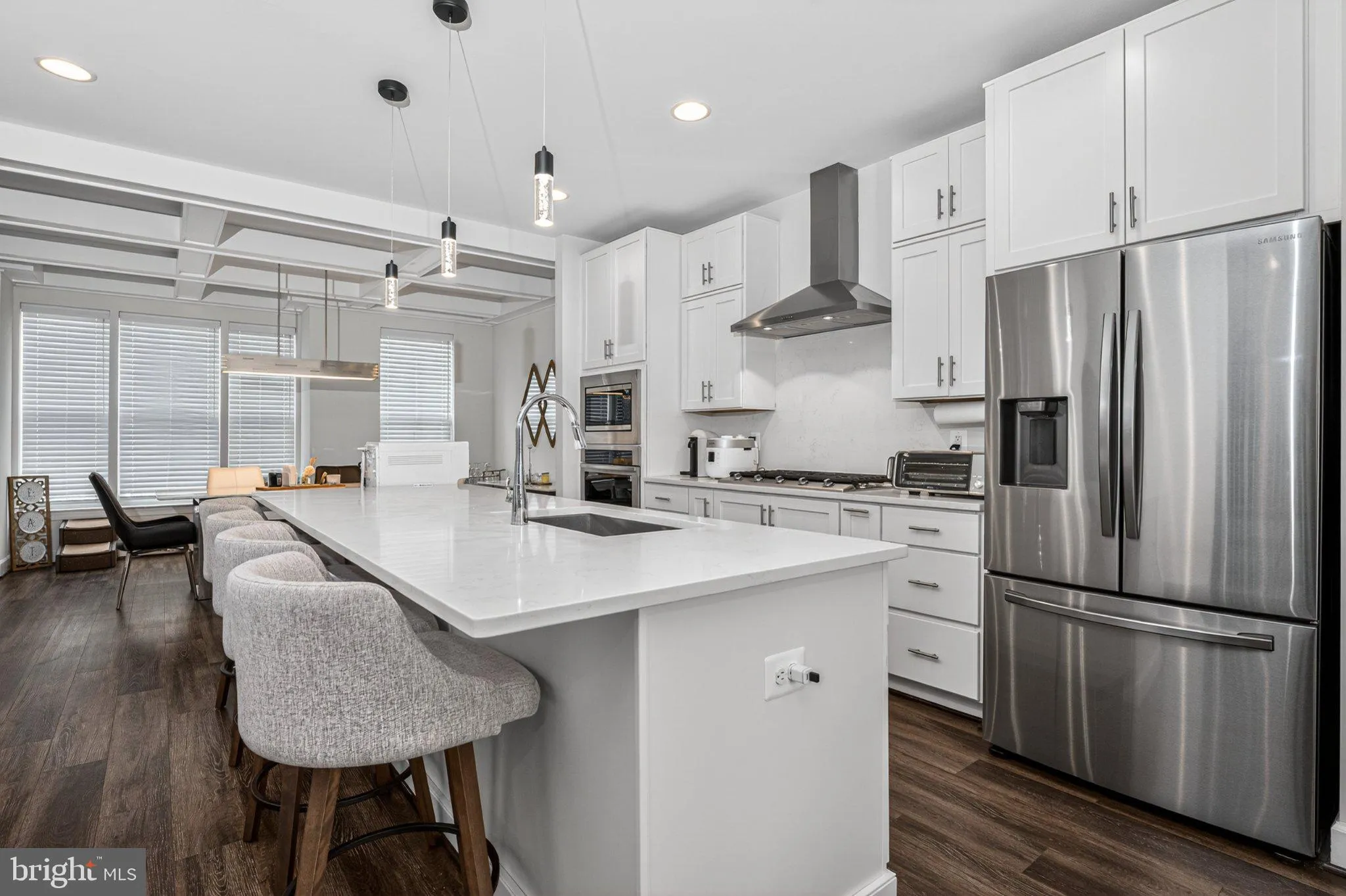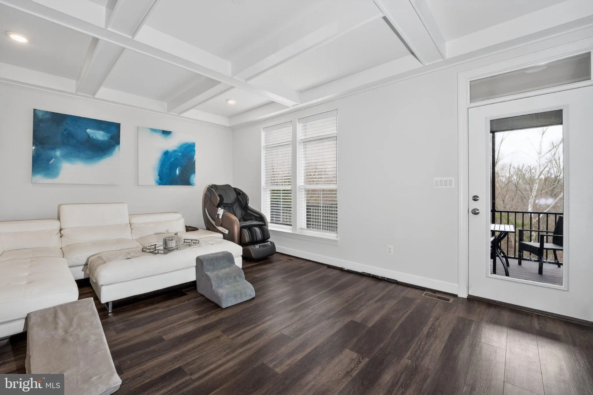 The heart of the home is the signature Miller & Smith kitchen, an open-concept marvel featuring an oversized quartz island, upgraded cabinetry, and a sleek ceramic backsplash. The chef-inspired space flows seamlessly into a magnificent great room, where a sophisticated Coffered Ceiling adds architectural depth and an extra touch of elegance. This light-filled living area is perfect for both grand entertaining and cozy evenings. The main and upper level is finished with luxury vinyl plank flooring, recessed lighting, and a striking light fixture in the dining area.