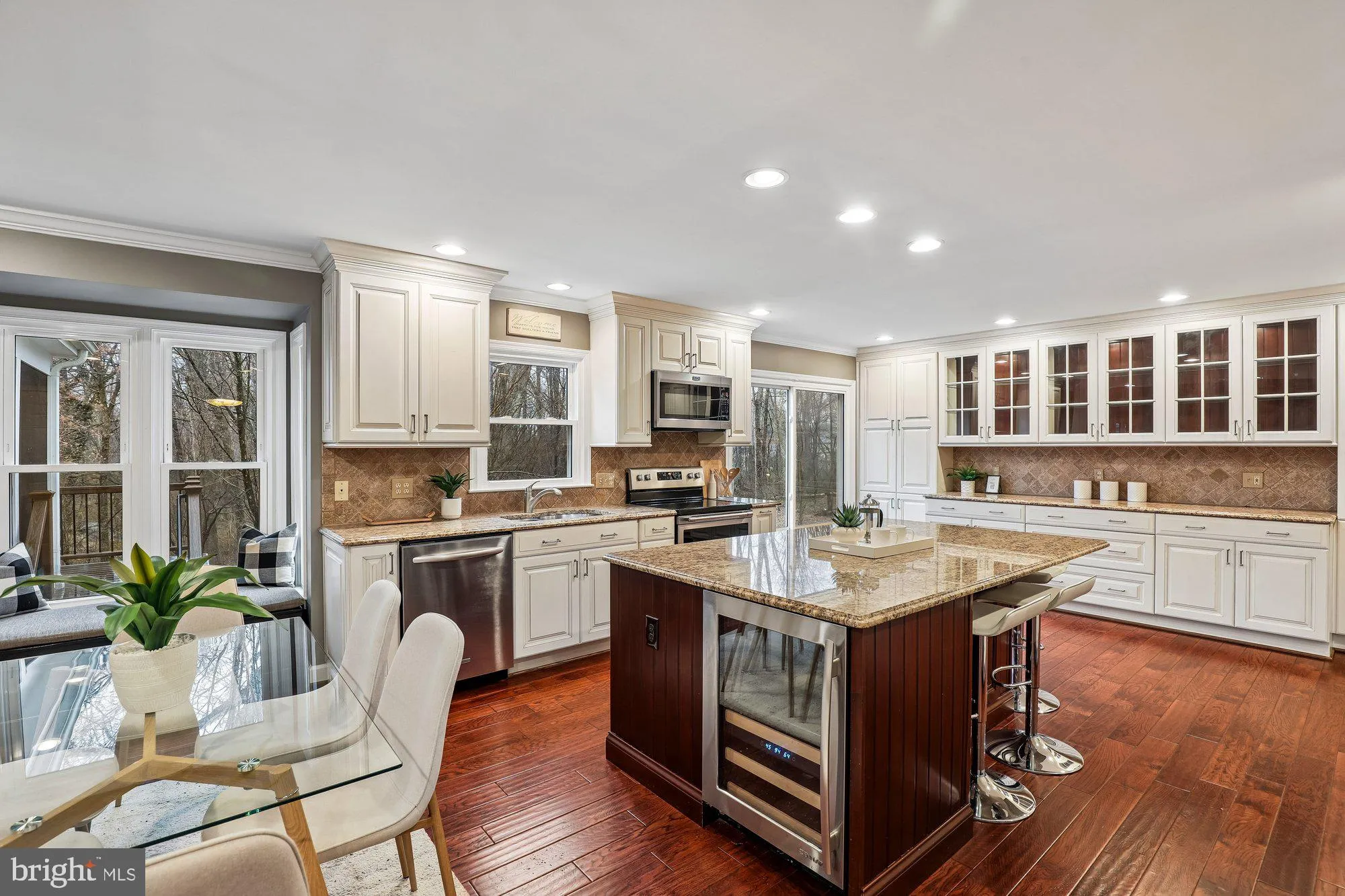 Welcome to Poplar Tree! Located at the end of a court and backing to trees, this is the one! NEW ROOF BEING INSTALLED THIS WEEK! The owners have lovingly cared for this home, and it shows! The front of the home has great curb appeal with custom hardscaping and charming front porch. As you enter the home, the first thing you will notice are the beautiful hardwood floors throughout the main level. The owners completely remodeled this level, removing the wall between the dining room and the kitchen to create one huge space and adding a main level office. This kitchen has it all! Custom cabinetry, custom backsplash, stainless steel appliances, beverage refrigerator and an island that can seat up to FIVE people! You will love the serving area/coffee bar! The kitchen is open to the large family room which has a stunning stone fireplace and a vaulted ceiling (the blinds in the vaulted area have a remote control). The doors from the family room lead to a GORGEOUS screened-in porch (furniture conveys) with a fan and TV. You will spend all your time out here overlooking the wooded views. The deck leads down to a custom patio with a fire pit! (furniture on patio also convey). Also on the main level is a sunny home office with two sets of double doors for privacy.