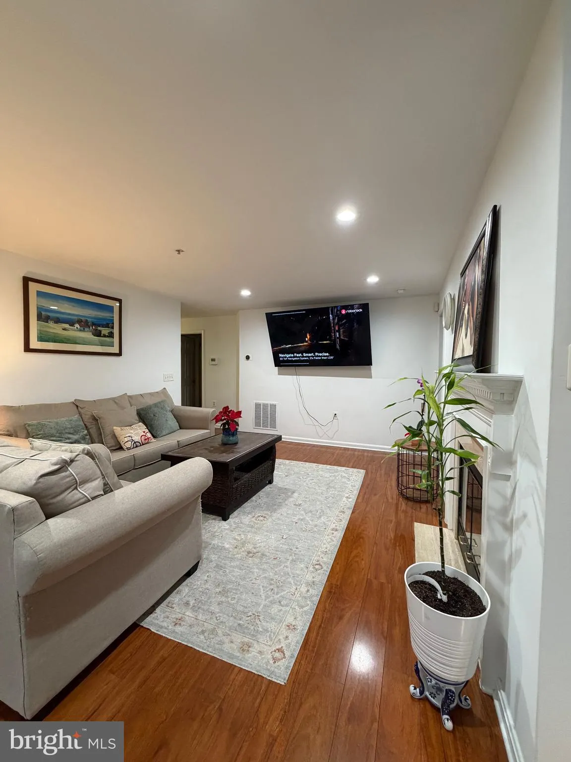 This bright main-level condominium is filled with natural light and offers comfortable, easy living. Step outside to your private patio—perfect for relaxing or enjoying morning coffee. The interior features beautiful hardwood floors in the main living areas, soft carpeting in the bedrooms, and a cozy gas fireplace that adds warmth and character.