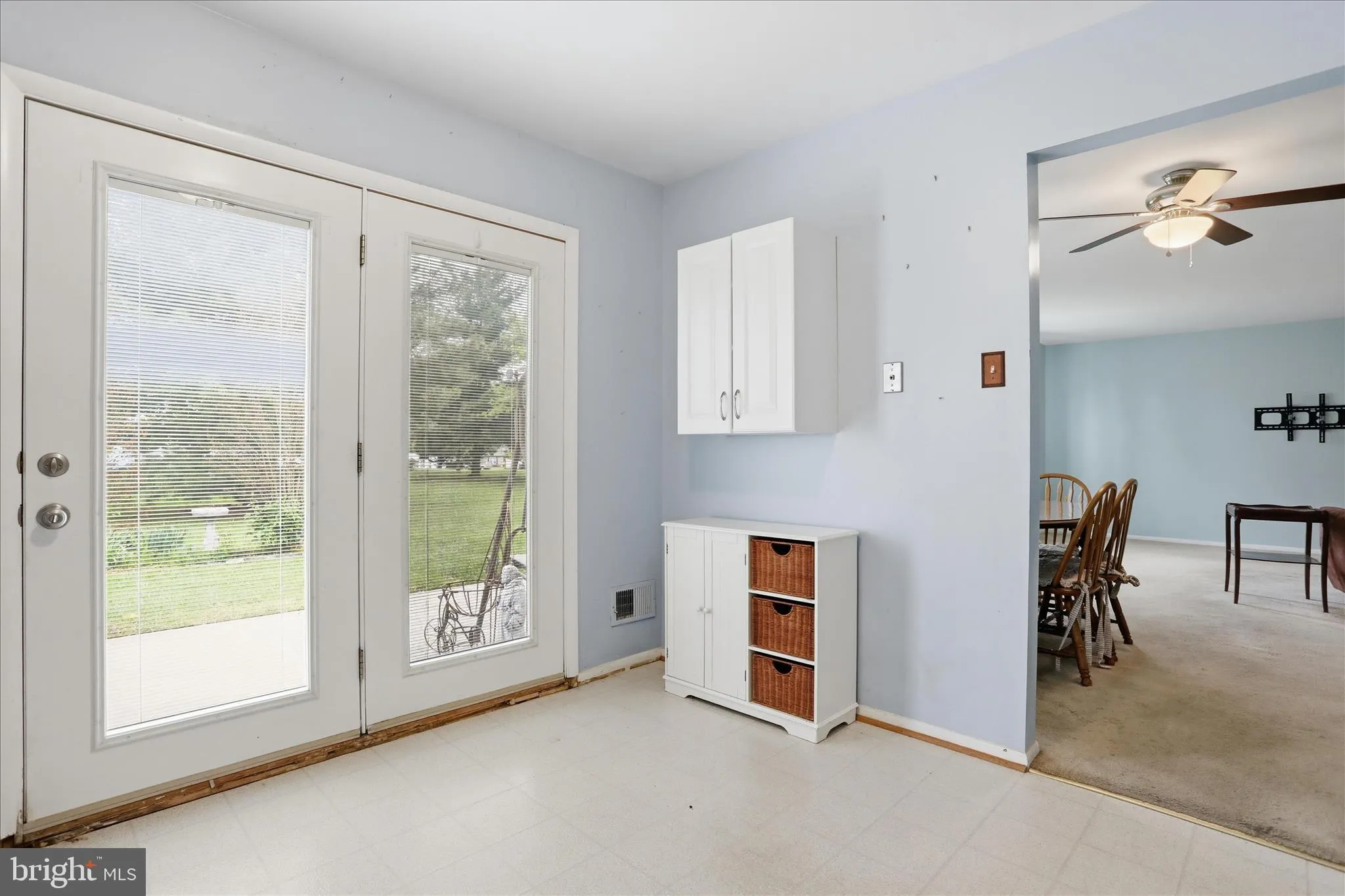 Double concrete driveway parking. The sliding lass door off of the eat in kitchen takes you to a Concrete patio outback that is ready if you would like to add a sunroom or keep it as it is. All of the shelving stays including the TV mounts.
