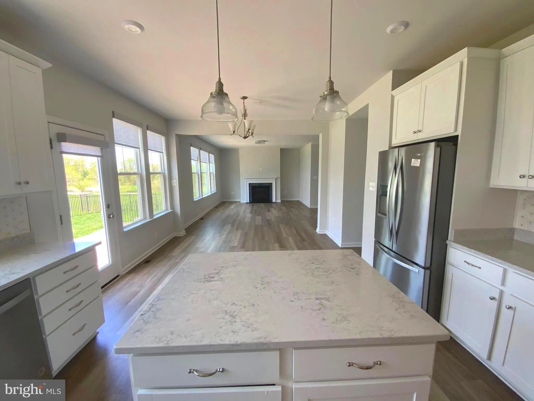 As you step inside, on the left, is the cozy sitting area filled with light. The heart of the home is the oversized gourmet kitchen, complete with high-end appliances, sleek countertops, and plenty of cabinet space. Enjoy meals in the adjoining dining area or entertain guests in the expansive family room, accented by an electric fireplace for cozy evenings.