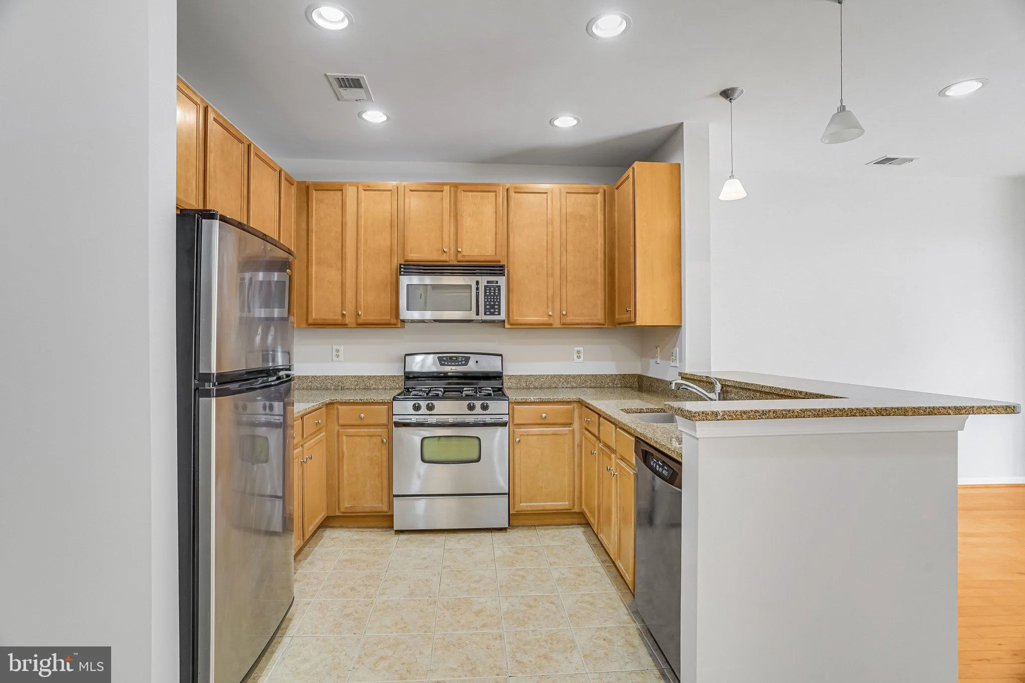 The thoughtfully designed kitchen offers granite countertops, stainless steel appliances, and a breakfast bar that flows effortlessly into the expansive living and dining area—perfect for entertaining or simply enjoying everyday comfort.