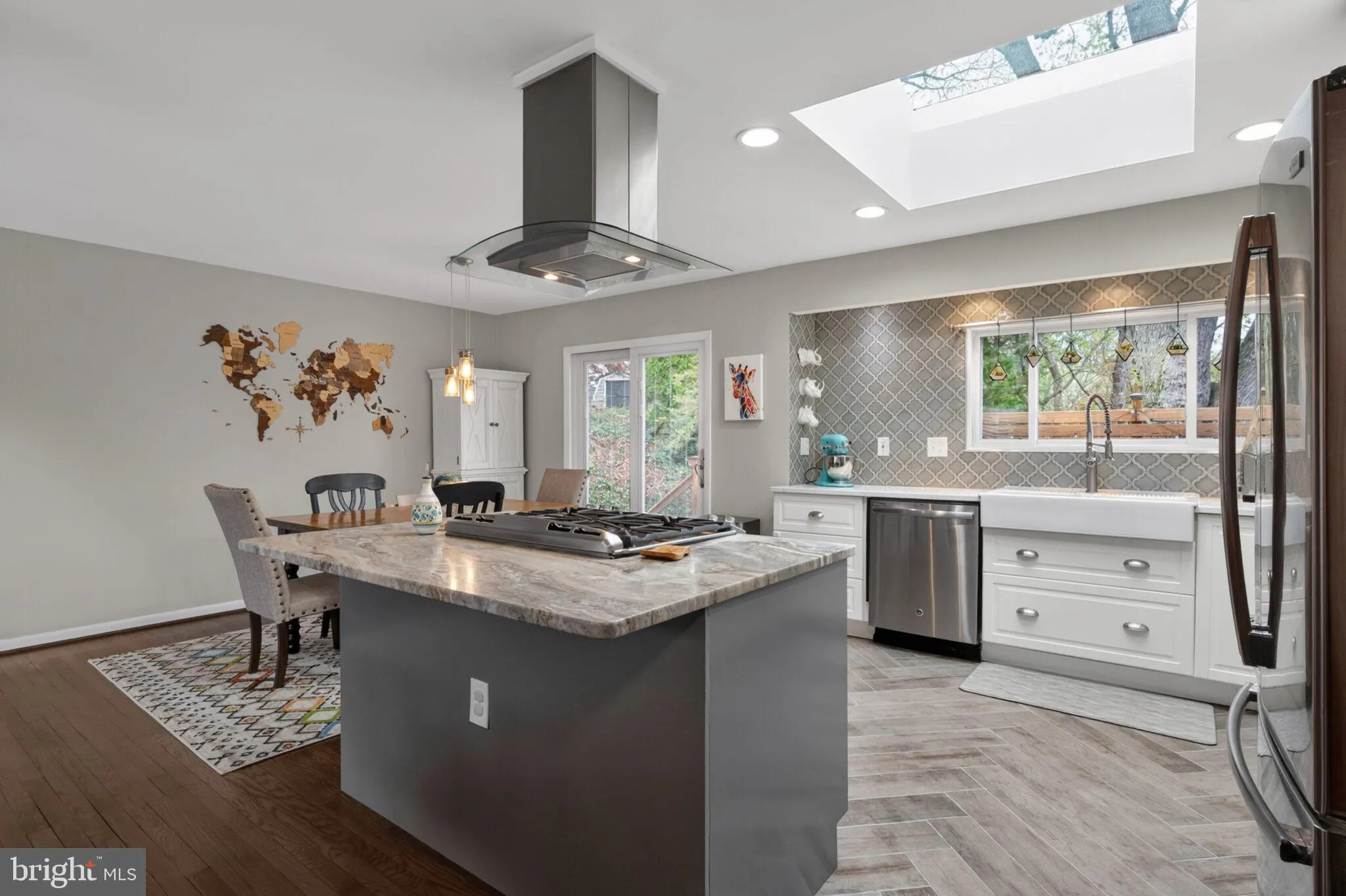 The kitchen is a true highlight, featuring a stunning renovation with a skylight that fills the space with natural light. It opens seamlessly to the di...