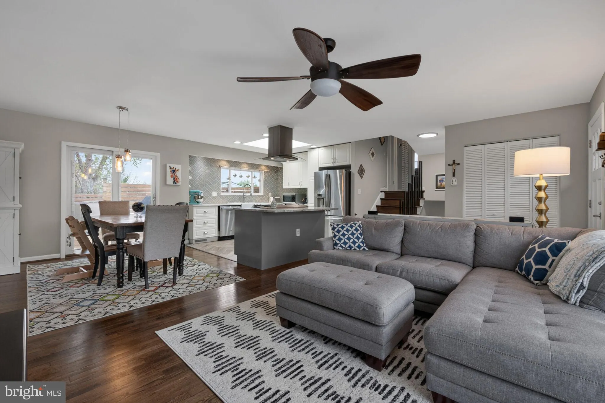 The kitchen is a true highlight, featuring a stunning renovation with a skylight that fills the space with natural light. It opens seamlessly to the dining area and flows right out to a two-level deck through sliding glass doors, creating the perfect setup for entertaining or everyday living. Hardwood floors have been refinished, and both the kitchen and bathrooms were thoughtfully updated in 2017.