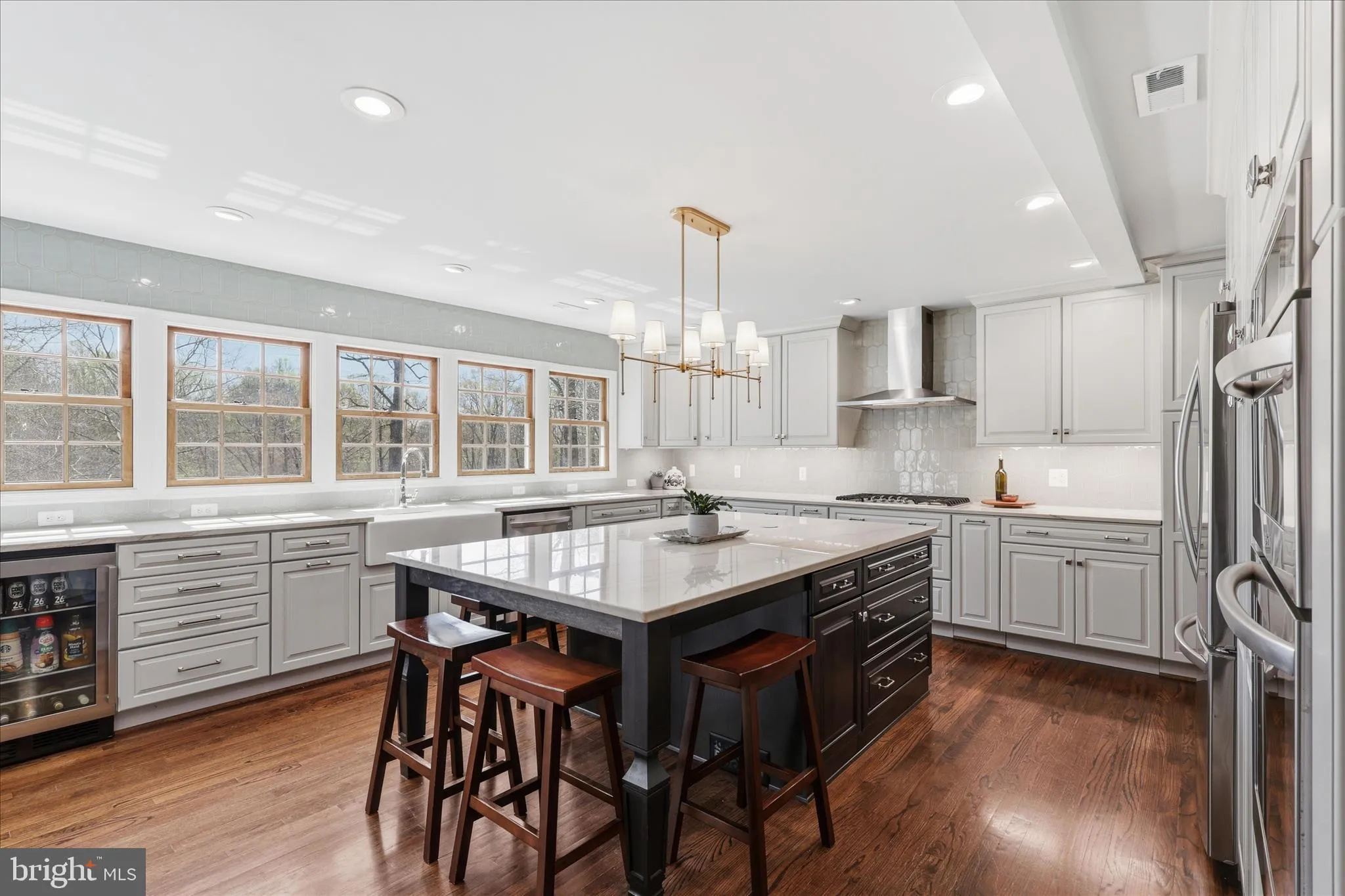 The kitchen is the Heart of this Home. It’s been fully renovated and features a giant center island, quartz countertops, stainless steel appliances, farmhouse sink, abundant custom cabinetry, large pantry and a wall of windows overlooking the outdoors. No expense was spared!