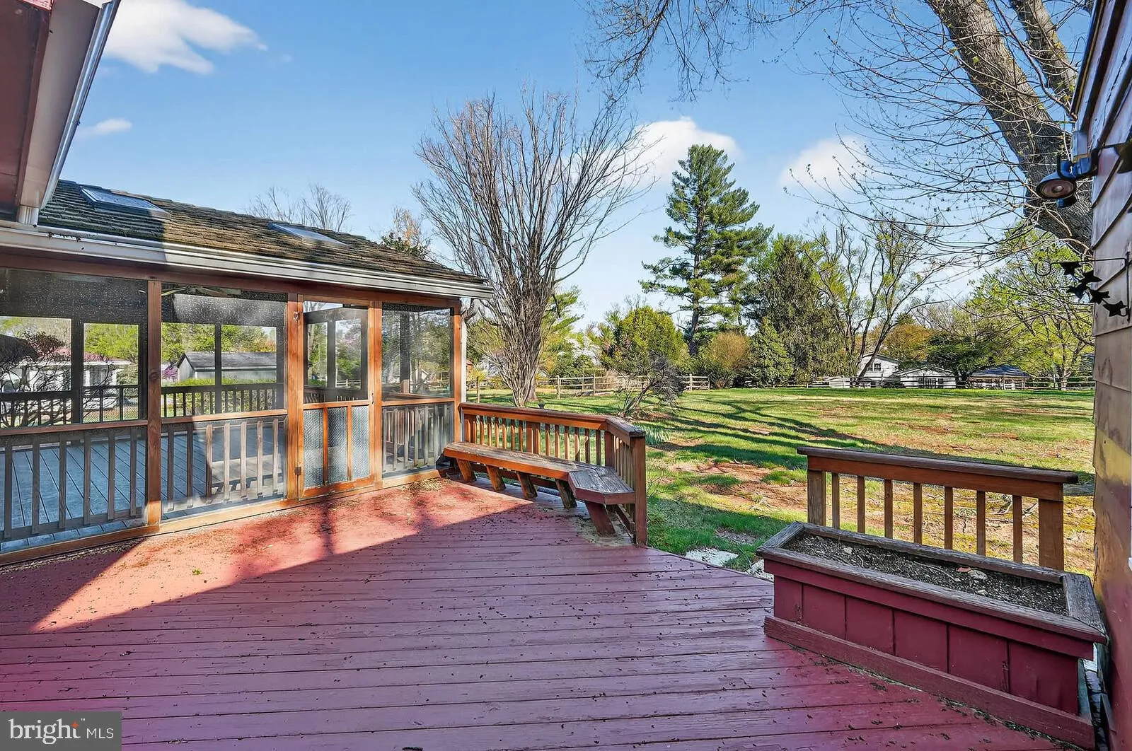 SOLID-BUILT COLONIAL in the much-sought-after neighborhood of Williamsburg Village , with a roadside lined with cherry trees, and situated on a level two-thirds-acre lot. The brick exterior embraces a ROOMY INTERIOR, with 4 bedrooms and 2-and-a-half bathrooms. The home offers over 2600 square feet of finished area, which allows generous-sized rooms, including a stately 2-story entry foyer. The longtime owner has taken very good care of the home – it is clean and well-maintained. There are replacement windows throughout. THE MAIN LEVEL has wood floors and some lovely chair rail and crown molding. The front foyer provides access to the stairway up to the 2nd floor or to all parts of the main level. There is a centrally-convenient powder room. To the left, one can enter through double-doors to the living room and can continue toward the back family room. The family room has a raised hearth with a wood-burning fireplace and brick surround. A sliding glass door leads directly to the backyard. Or one can proceed to the separate dining room that adjoins the kitchen with a breakfast tablespace area. Continuing to the right side of the home, there is a laundry room with washer, dryer, and double sink. The home’s utilities are also in this room, as is a second refrigerator. Continuing beyond the laundry is access to the two-car garage and a rear bonus room with direct access to the outside – this room can serve many possible functions, such as for exercise, games, crafts, or storage. THE UPPER LEVEL features hardwood flooring throughout. The spacious primary bedroom has two double-wide walk-in closets with built-in shelving, a ceiling fan, and connects directly to the primary bathroom with a glass-enclosed tub-shower and a skylight. This bathroom also connects to a large office area – that COULD BE CONVERTED TO A FIFTH BEDROOM. Bedroom 2 also has a ceiling fan. All four bedrooms have large closets. There is a second full bathroom on the upper level with a glass-enclosed tub-shower and a skylight. An attic is located above the upstairs hallway and offers additional storage space. THE FENCED BACKYARD is ready to host friends of all-ages. The yard lends itself to peacefully relaxing or to a variety of games and sports activities. The back of the house has a large screened porch with a ceilng fan and 4 skylights. Adjacent are a brick patio and a wooden ground-level deck with built-in benches. THE TWO-CAR GARAGE leads to driveway parking for 5 cars plus street parking. The back of the garage leads to a BONUS ROOM – with separate outside entry – great for storage or exercise room or games or hobbies – let your imagination proceed! The home is CLOSE TO ALL THE AMENITIESs of Olney (dining, shopping, Olney Theatre, sports, business & medial facilities, and is in close-proximity to popular public and private schools, as well as major communter routes, and the Glenmont metro is only four miles south. A GREAT PRICE FOR A GREAT COMMUNITY – HURRY – THIS WON’T LAST LONG!