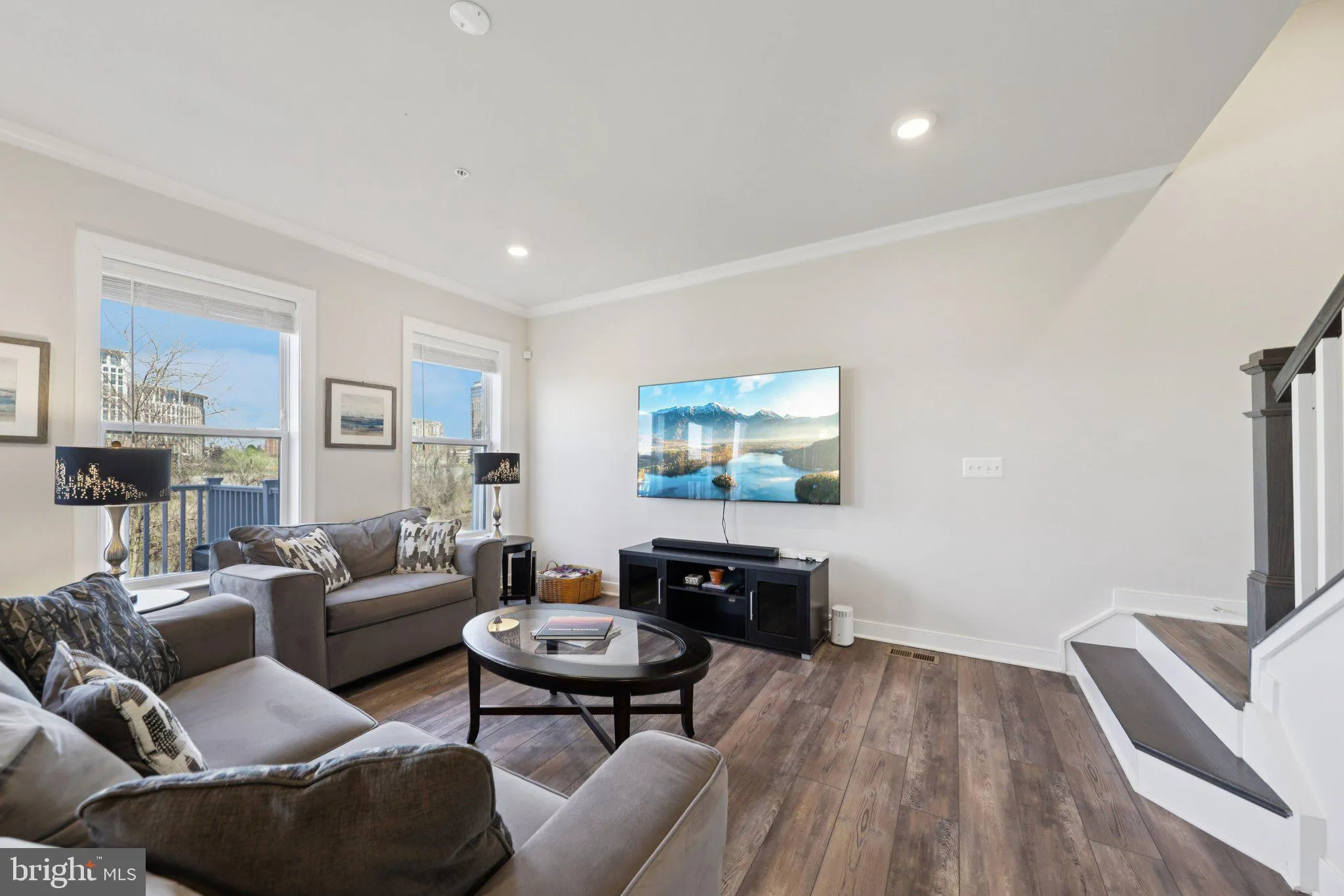 Experience modern living with a view! This stunning 2021-built end-unit townhome in Huntington Crossing offers over 2,100 sq. ft. of sun-drenched space across four finished levels. Unlike typical townhomes, every room in this house boasts unobstructed views of Cameron Run/Hunting Creek, and lush parkland. The main level features an open-concept layout with a chef’s kitchen (gas cooking!), huge island, a sleek electric fireplace, and a private balcony. Retreat to the top-floor primary sanctuary with a spa-like bath, or enjoy the lower-level recreation room complete with a built-in bar and a second fireplace. Current owners splurged on upgrades for the bathroom, hardwood stairs, and high end appliances. The oversized one-car garage (with an EV hookup) and private driveway with room for a second vehicle. The HOA covers exterior maintenance, landscaping, trash collection, and community improvements—making this a truly low-maintenance lifestyle. With its modern construction, flexible floor plan, quiet community feel, and unbeatable proximity to DC, this home delivers exceptional value in one of Northern Virginia’s most convenient locations. Commuting is a breeze with a 5-minute walk to the Huntington Metro and a 5-minute drive to Old Town Alexandria. With an EV-ready garage, private driveway, and an HOA that covers exterior maintenance and water/sewer, this is the ultimate low-maintenance lifestyle.