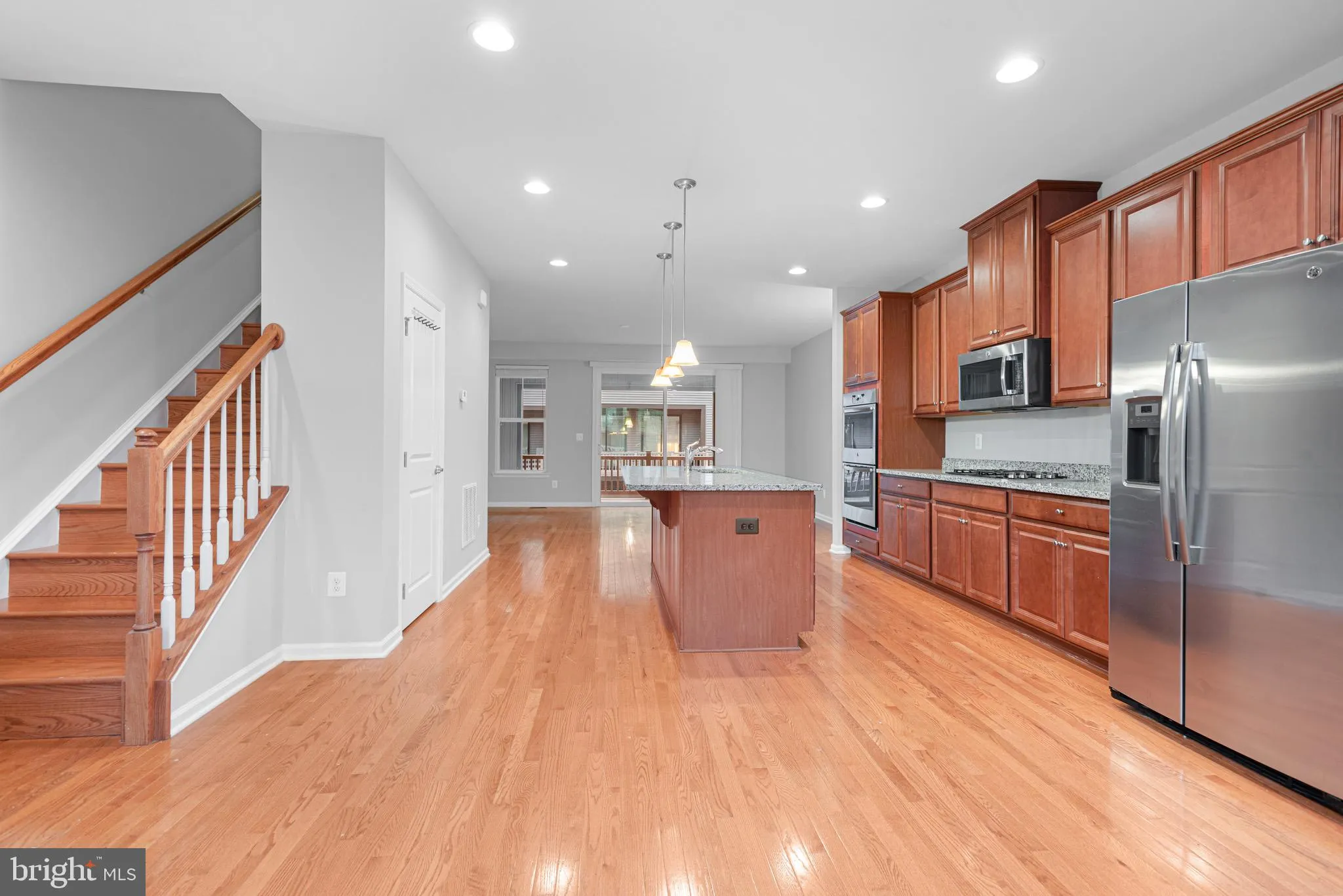 4 bedrooms and 3.5 full bathrooms, two car garages, HARDWOODs on all levels, upgraded oak staircase. Entry level features a multipurpose room with full en-suite bathroom. Main level has the gourmet kitchen including upgraded sink faucet, stainless appliances, refrigerator/freezer, double wall over, a large kitchen island, granite countertops, upgraded cabinets and access to large, covered balcony. Primary bedroom features oversized closet and upgraded bathroom with dual vanities. Laundry on bedroom level. Plenty of parking space in front of the property.