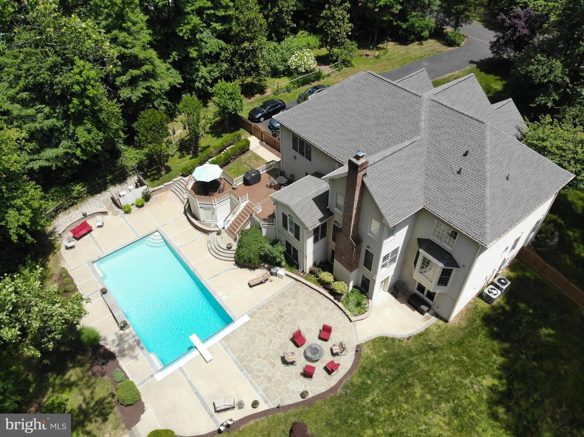 The finished daylight walkout lower level is designed for entertaining and relaxation, offering a large game room, media/TV room, full bath, and opportunity for a fifth bedroom. An expansive unfinished storage area—with full-size windows—provides exceptional potential for future finished space. Step directly outside the full walkout to your private outdoor oasis. Enjoy your own resort-style retreat featuring an incredible in-ground custom saltwater Gunite pool with waterfall, extensive concrete decking, auto retractable pool cover, and an enormous elevated Trex deck overlooking the grounds—perfect for gatherings or peaceful evenings under the stars.