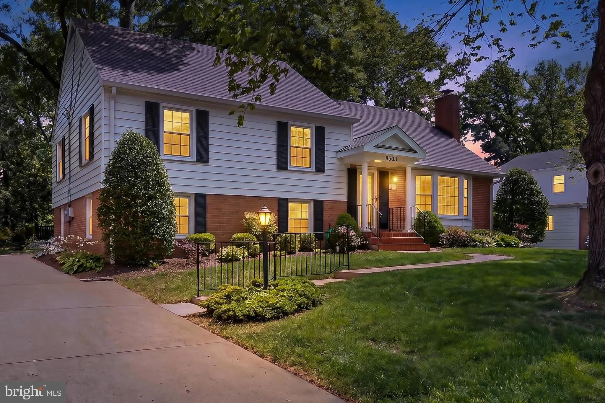 Charming 5 level home in Popular Waynewood!! 4 bedrooms, 2.5 baths all beautifully maintained by longtime & very detailed owner** Gorgeous solid refinished hardwood floors** Gracious foyer leads to spacious living room w/masonry fireplace** Bright Sunroom addition has terracotta tiled flooring, warm wood ceiling & access to rear yard**Eat-in kitchen has recently replaced appliances**Generous primary bedroom with Lovely remodeled custom tiled shower bath** Full HVAC replaced in 2018** NEW water heater 2025!!* HUGE walkup attic – can be finished for additional living area** Charming covered front porch + covered basement rear entry** Concrete driveway and main sewer line both replaced**Quality, energy efficient double hung windows**Home was all recently painted**