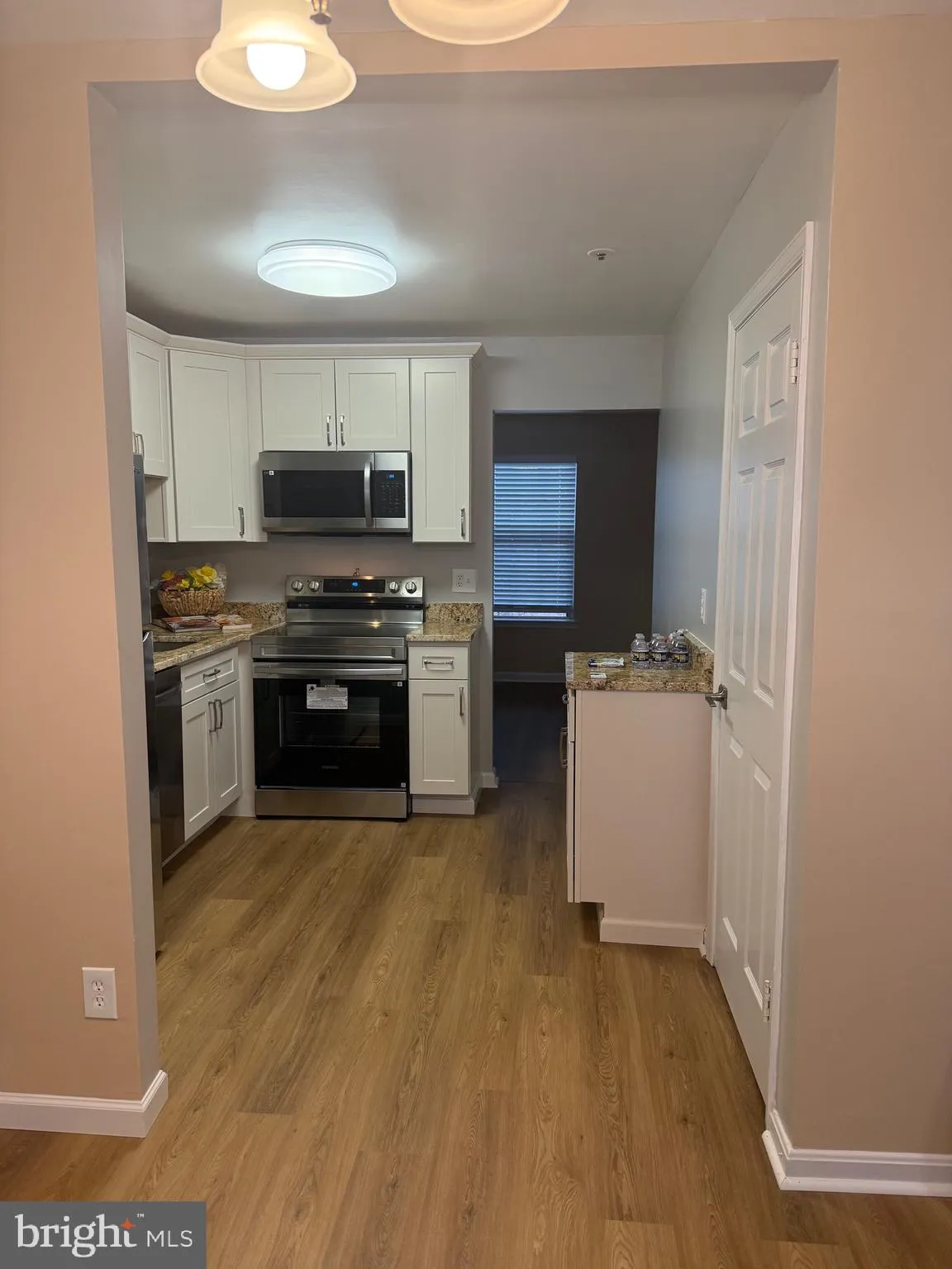 The main level includes an open galley kitchen, a separate dining area, and a living area, along with a convenient powder room. In addition, there is a all-in-one washer/dryer. On the upper level, you will find the owner’s suite with plenty of closet space, an additional secondary bedroom, and a full bath.