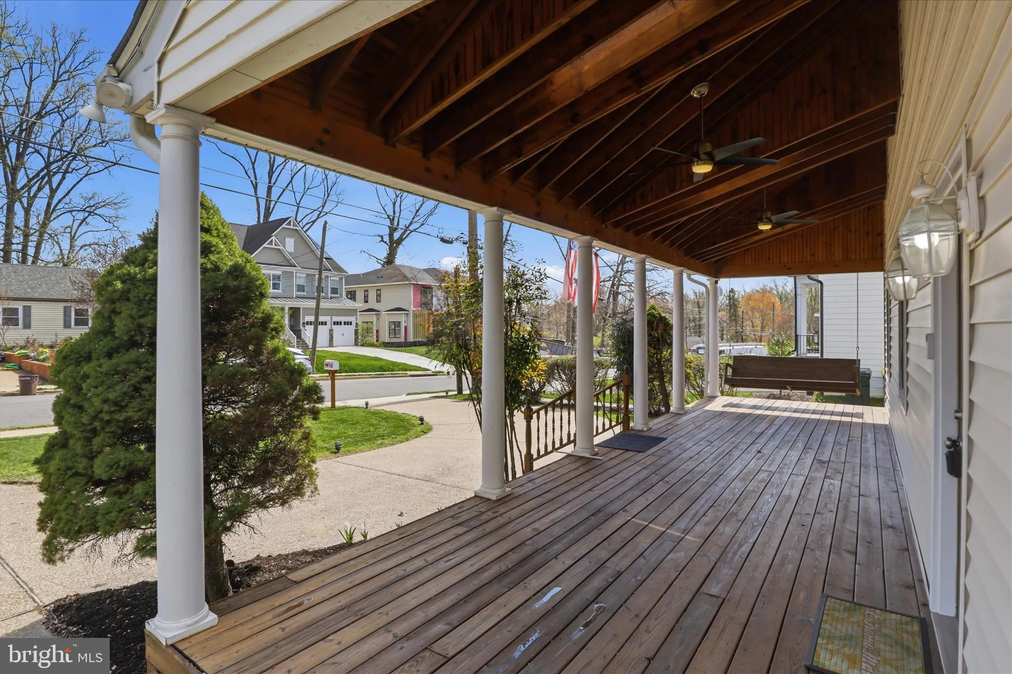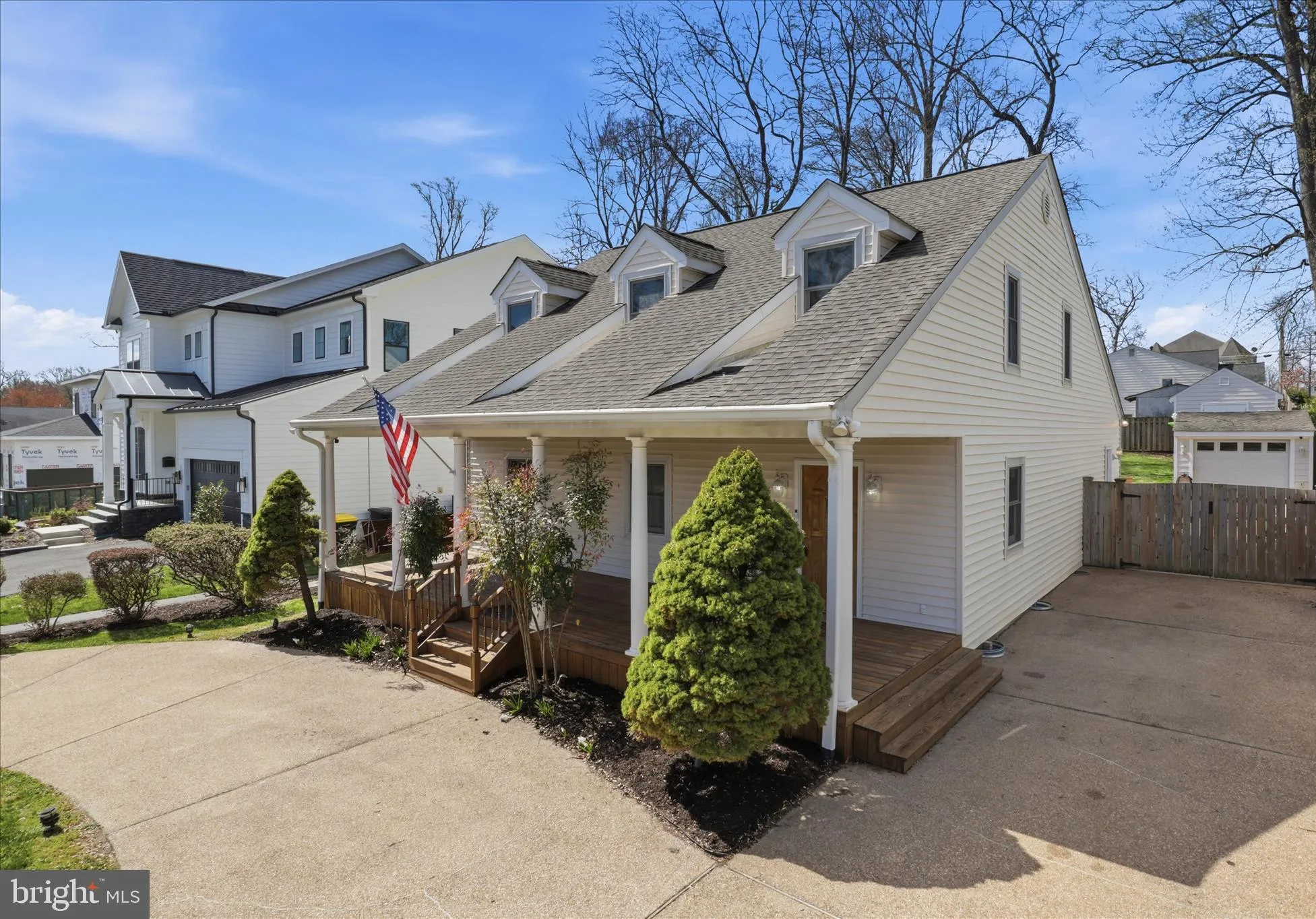 Discover the perfect blend of timeless character and modern functionality on a premier lot in the heart of Falls Church. With local new construction reaching $2M+, this stunning 5-BR, 4.5-BA Cape Cod offers incredible value and over 2,500 sq. ft. of thoughtfully designed living space. Step from the welcoming front porch and classic wooden swing into a bright foyer that opens to a dramatic living room featuring high ceilings, skylights, and a cozy gas fireplace. Hardwood floors lead to the heart of the home: a gourmet kitchen-dining combination equipped with a functional island, ample storage, granite countertops, and stainless steel appliances.