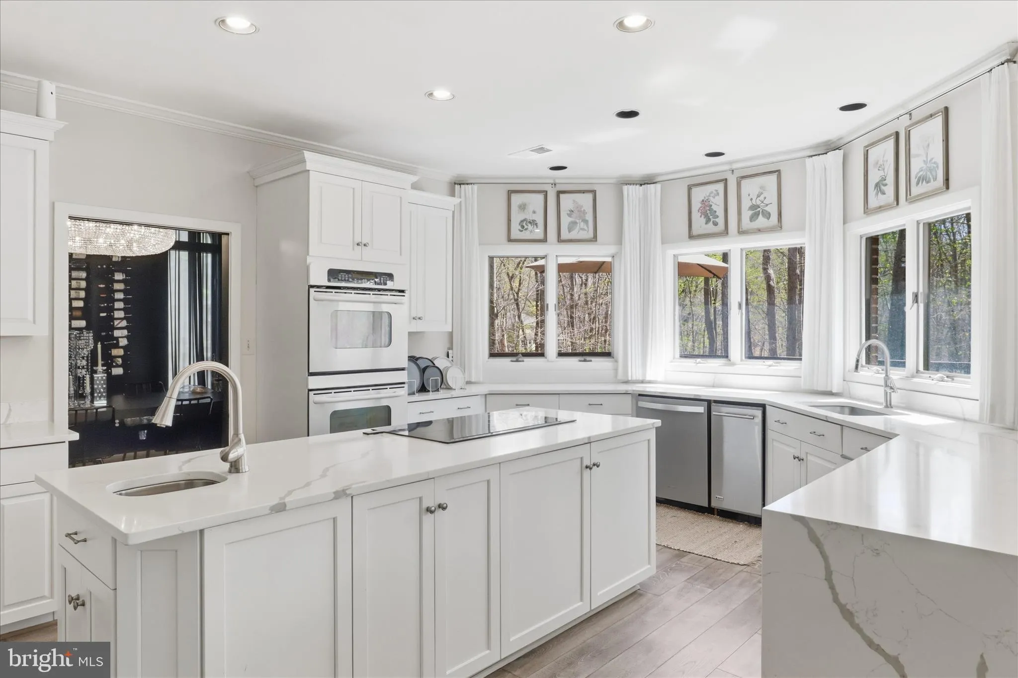 It has 5 large bedrooms, 3.5 baths and is sited on a serene private 6 acre lot with a long driveway. Stunning views greet you out of every window. Step into the double door entryway to find a circular staircase leading you to the upper level and soaring ceilings throughout. On the main level.. you’re greeted by walls of windows that fill the home with lots of natural light. The expansive family room has a 2-story large brick fireplace with high ceilings and a wet bar. The kitchen comes with the finest appointments including a double oven, in-island sink, quartz countertops,, stainless steel appliances and more. The formal living and dining room are simply elegant. A main level office, a powder room that has just been updated (April 2026) with a long stone sink and designer mirror and lighting come too. The grand primary suite is a true sanctuary, featuring a spacious walk-in closet and a luxurious, spa-like bath with Washlet toilet. There are 3 more spacious bedrooms on the upper level with another full bath. The walk-out lower level provides exceptional additional living space, complete with a very large recreation /movie/game room, fitness area, full bath, and an extra guest room—ideal for hosting family and friends. The 3 car garage is expansive.. it has room for loads of storage and epoxy flooring. The rear deck wraps around a large portion of the home. Great for entertaining. There’s also a lower level patio. The lot is picture perfect with its mature trees and landscaping. It’s truly tranquil and private. All of this is ideally located just moments from the historic town of Clifton, known for its charming shops and delightful dining options. A rare opportunity to own such a remarkable home. Close to all the major commuter routes, shopping and so much more. Don’t miss this one.
