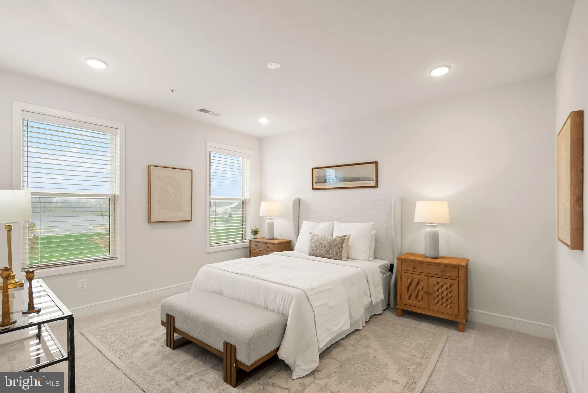 Welcome to this beautifully appointed 3-bedroom, 2 full bath single-level condominium in the award-winning 55+ active adult community of Birchwood at Brambleton, one of Northern Virginia’s most sought-after active adult destination. Built in 2023 by Van Metre Homes, this desirable Griffin II model combines modern elegance with low-maintenance living. Freshly painted throughout, this light-filled home features an open-concept floor plan with luxury vinyl plank flooring in the main living areas and brand-new carpet in all bedrooms. The family room seamlessly opens to the dining area, creating an ideal space for both everyday living and entertaining. The gourmet kitchen is the heart of the home, showcasing a spacious eat-in island with deep sink, quartz countertops, subway tile backsplash, GE Profile stainless steel appliances, 5-burner gas cooktop with vent hood, double oven microwave, refrigerator with water and ice dispenser, and a generous pantry. The luxurious primary suite offers a peaceful retreat with two spacious closets and a well-appointed en suite bathroom featuring double vanities, quartz countertops, and a frameless walk-in shower with built-in seating. The second bedroom features a large closet, while the versatile third bedroom can be used as a home office or guest space with a closet. A convenient 2nd full bathroom is located off the hall. The thoughtful layout includes a welcoming entry with coat closet and a full-size laundry room with top-of-the-line LG washer and dryer. Custom window treatments add a refined touch throughout. Enjoy outdoor living on your private balcony featuring durable Trex flooring. This home also includes a 1-car garage and private driveway for added convenience. Birchwood at Brambleton offers an unmatched lifestyle centered around its impressive 20,000 sq. ft. clubhouse, a vibrant social hub featuring indoor and outdoor pools, fitness center, demonstration kitchen, indoor and outdoor bars, theater and game rooms, art studio, golf simulator, and multiple gathering spaces. Residents enjoy pickleball and bocce courts, scenic walking paths, green spaces, a greenhouse and garden area, and a fishing pier with catch-and-release access at Lake Birchwood. Experience resort-style living every day in this exceptional home and community. Conveniently located 9 miles to Dulles International Airport. A short 9 minute drive to the Metro.