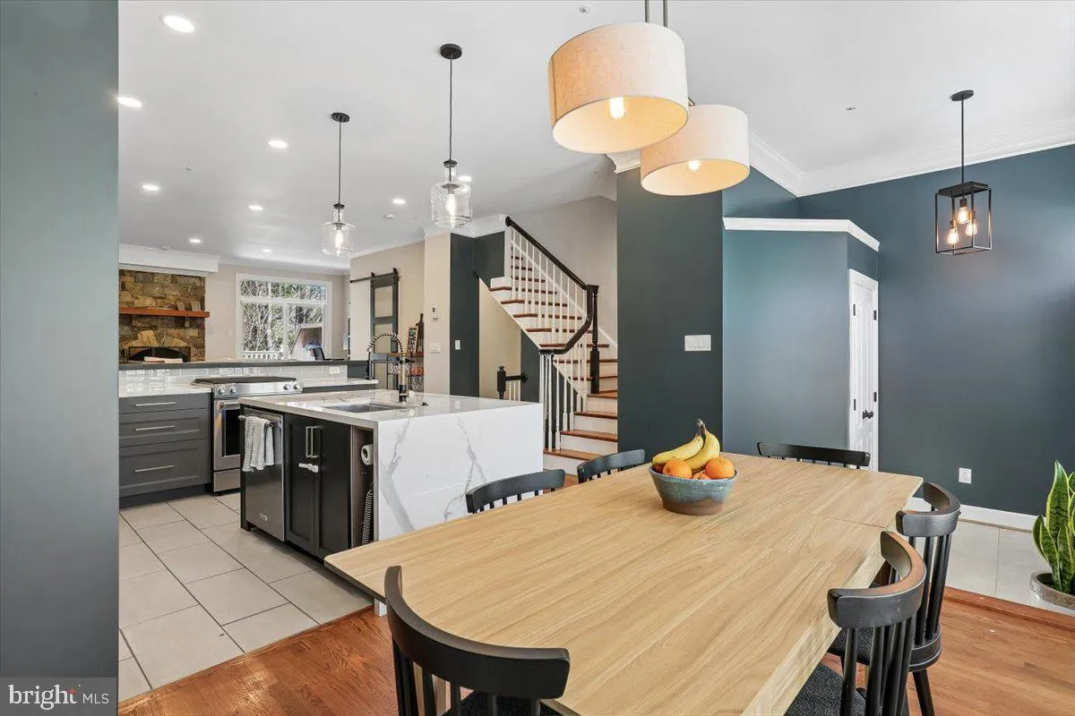 OPEN SUNDAY 4/12 1-4PM. Completely transformed 3BR/3.5BA luxury brick townhouse with walk-out lower level and two-car garage built by Magruder Companies in Rose Hill Falls. THE FIRST OF ITS KIND with a completely wide-open main level floorplan of only perimeter walls. Approximately 2,200 square feet of living area on three levels. Special features include 9-foot, 10-foot, and vaulted ceilings; skylights; refinished oak hardwood flooring throughout the main level and much of the upper level; new stamped-pattern carpeting; all new kitchen with custom cabinetry, porcelain counters, subway tile backsplash, massive center island with a waterfall countertop, and stainless appliances; all remodeled or renovated bathrooms; recessed lighting; detailed molding package and custom window treatments throughout. Wonderful outdoor space highlighted by a maintenance-free Trex deck with vinyl railings, privacy panels, and flagstone patio under the deck with vinyl porch ceiling and ceiling fan overlooking the fenced yard. Brick and flagstone stairway and stoop with vinyl railings; marble foyer entrance with new chandelier and coat closet; chic open main level with versatile floorplan allowing for informal dining area or sitting area in the front of the home with floor-to-ceiling windows and plantation shutters; at the center of this level boasts an all new chef’s kitchen with tile flooring, custom cabinetry, porcelain countertops, subway tile backsplash, stainless KitchenAid & JennAir appliances, recessed lighting, pantry cabinets with slide out drawers, and center island with waterfall countertops and pendant lighting; the rear of the main level features an open family room concept with flagstone fireplace, raised stone hearth, built-in firewood storage niches or bookshelves, a workstation/study area, a pantry closet with opaque glass barn door, and sliding glass doors to Trex deck; remodeled powder room with marble flooring; solid oak staircase to upper level hallway with vaulted ceiling, skylights, and recessed lighting; spacious primary bedroom suite with vaulted ceiling, ceiling fan, sitting area, and cedar walk-in closet; renovated primary bathroom with designer tile flooring, vaulted ceiling, skylight, recessed lighting, two vanities with porcelain countertops and lighted mirrors, separate water closet, and huge walk-in shower with frameless glass enclosure, designer tile shower floor, and subway tile wall surround; two additional bedrooms with vaulted ceilings, new carpeting, and double-door closets; remodeled hall bath with new LVT flooring, new double vanity with marble countertops, and ceramic tile tub surround; upper-level laundry room with high-efficiency top-load LG washer and dryer; walk-out lower-level recreation room with recessed lighting, LVP flooring, and French doors to flagstone patio under the deck; remodeled ceramic tile full bath; foyer access to two-car garage with built-in cubbies and bench seating; updated systems and structural throughout including Bryant Evolution HVAC, architectural shingle roof, and new Thompson Creek windows with-50 year warranty. Without leaving the neighborhood, there are over a mile of bucolic walking/bike paths, forested conservation areas, sidewalks, two tot lots, a private tennis court, and a basketball court. Adjacent to the development sits the City of Rockville’s Bullard Park at one end of the neighborhood and all of the sports fields, track, and tennis courts of Julius West Middle School on the other side. Be part of the vibrant Rockville Town Center featuring shopping, fine restaurants, sidewalk cafes, the Rockville Regional Library, Regal Cinemas, and other entertainment and cultural facilities. Less than a mile from the Rockville Metro (Red Line) for those looking to commute via mass transit.