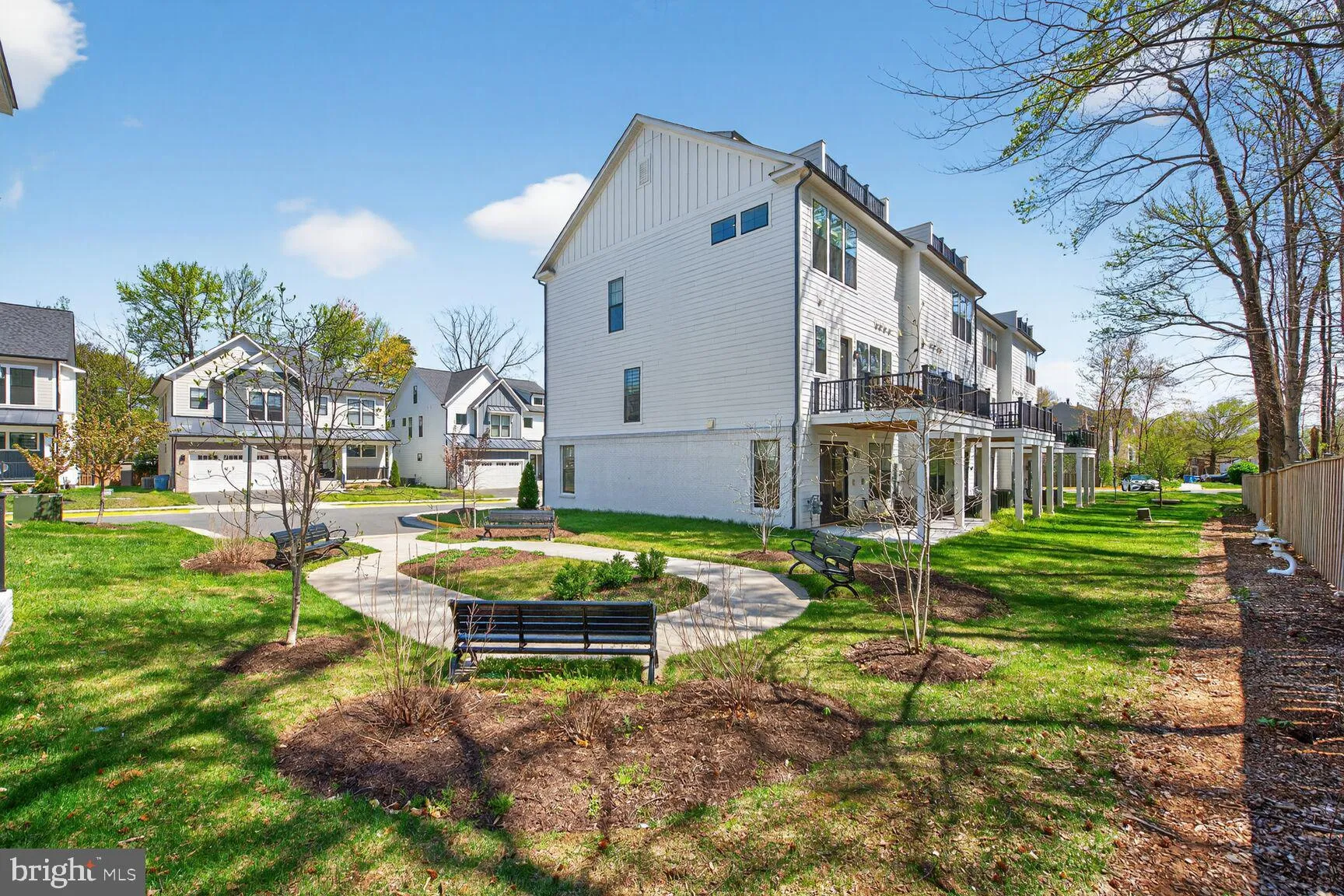 Better than new, this stunning end-unit luxury townhome showcases over $100K in premium upgrades and a sophisticated four-level modern design filled with natural light and upscale finishes throughout. This home offers exceptional energy efficiency with dual-zoned HVAC systems, a Rinnai tankless water heater, R-38 attic insulation, and durable brick & Hardie Plank siding. Elegant 7” engineered hardwood flooring extends throughout the home, enhancing its seamless, contemporary feel. The main level features 10-foot ceilings and an impressive open-concept gourmet kitchen designed for both everyday living and entertaining, complete with quartz countertops, waterfall island, pendant lighting, upgraded GE stainless steel appliances, custom soft-close cabinetry, designer backsplash, and range hood. The adjacent living area opens to an oversized Trex deck overlooking peaceful wooded views—perfect for relaxing or hosting guests. Upstairs, the luxurious primary suite offers a spa-inspired bath with walk-in shower, double vanity, and designer tile finishes, along with the convenience of a bedroom-level laundry room. The top-level loft and rooftop terrace provide the ultimate indoor-outdoor lifestyle, ideal for entertaining or enjoying sunset views. This level also features a private office with bath and wet bar, enhanced by large windows with expansive views—perfect for working from home or hosting guests. The lower level includes walk-out access to the backyard and direct entry to the garage, adding flexibility and convenience. Ideally located near top shopping, dining, and entertainment, with easy access to Route 28, Route 50, I-66, and Dulles International Airport, this home offers the perfect combination of luxury, location, and lifestyle. A rare opportunity to own a model-like end-unit townhome with rooftop terrace and premium upgrades—don’t miss it!