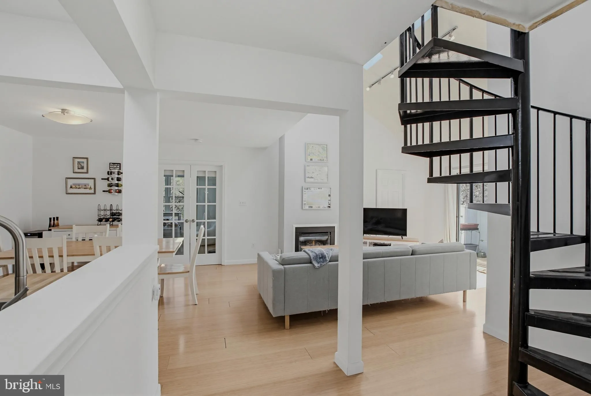 Step inside to gleaming hardwood floors and a cozy gas fireplace that sets a warm, inviting tone. The cathedral ceiling and skylights over the living and dining areas amplify the airy, bright ambiance, making everyday living feel expansive and joyful.