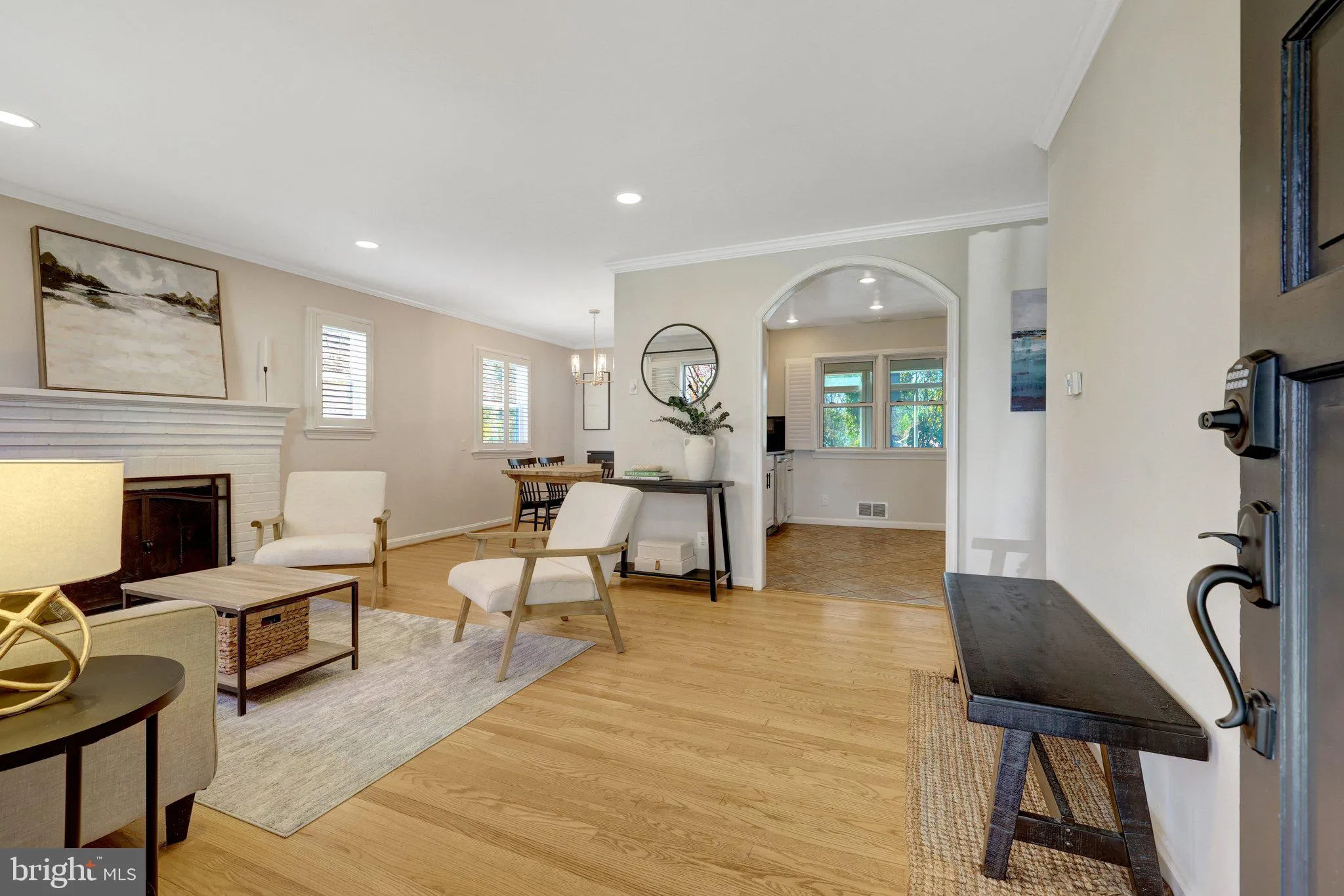 Beautifully updated and meticulously maintained home featuring gleaming hardwood floors, crown molding, and a cozy fireplace, with a thoughtfully renovated kitchen offering custom cabinetry, granite countertops, and an open flow to the dining area; the main level also includes a stunningly remodeled full bathroom wi...