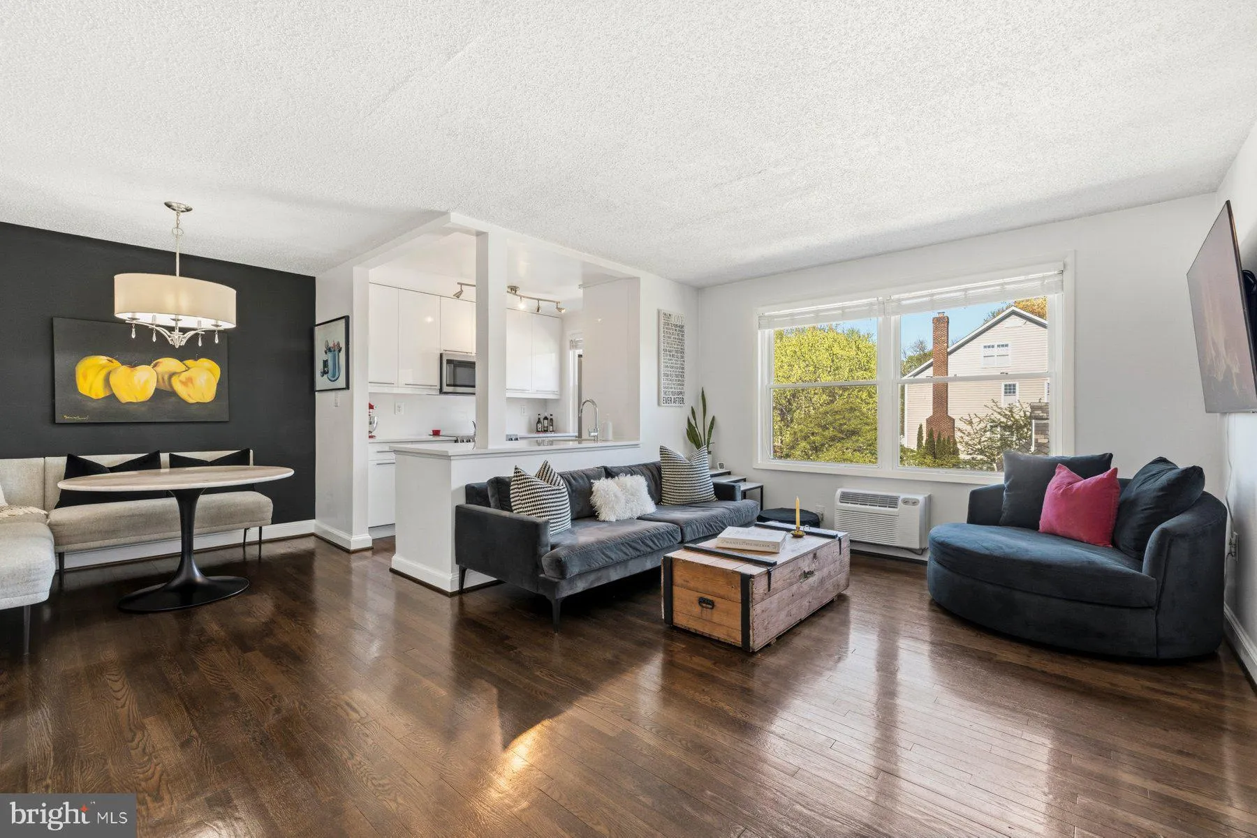 Completely turn-key and beautifully updated, this stylish 1-bedroom condo in the sought-after MacArthur Park Condominium building in Cabin John offers effortless living in a prime location. From the moment you enter, you’ll appreciate the refinished hardwood floors and thoughtfully designed modern finishes throughout. The renovated kitchen features sleek quartz countertops, stainless steel appliances and contemporary cabinetry, all complemented by bold, designer-inspired black accent walls that add a sophisticated touch. The updated bathroom showcases classic white subway tile, a large vanity and ample storage. The spacious bedroom includes a generous walk-in closet with plenty of room for organization, while the home’s treetop views provide a peaceful, private backdrop. Additional highlights include updated convector HVAC units, dedicated parking space, extra storage via a basement storage cage and convenient bike storage within the building. A perfect blend of style, comfort and convenience—this move-in-ready condo is an exceptional opportunity in one of Cabin John’s most desirable communities.