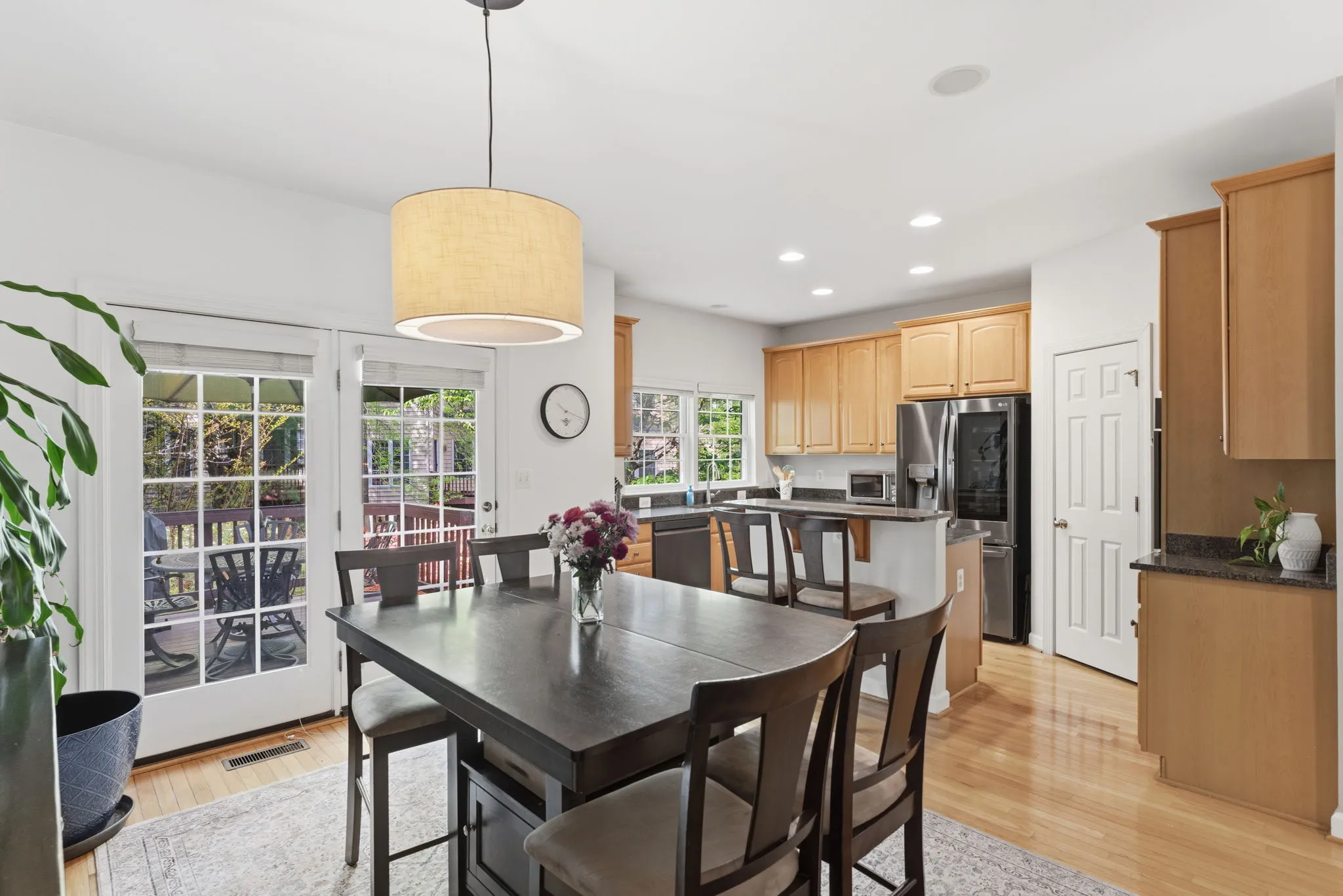 The main level features a well-appointed kitchen with access to a private deck, creating a seamless indoor-outdoor flow. The fully fenced rear yard with stone patio offers additional space for relaxing or hosting.