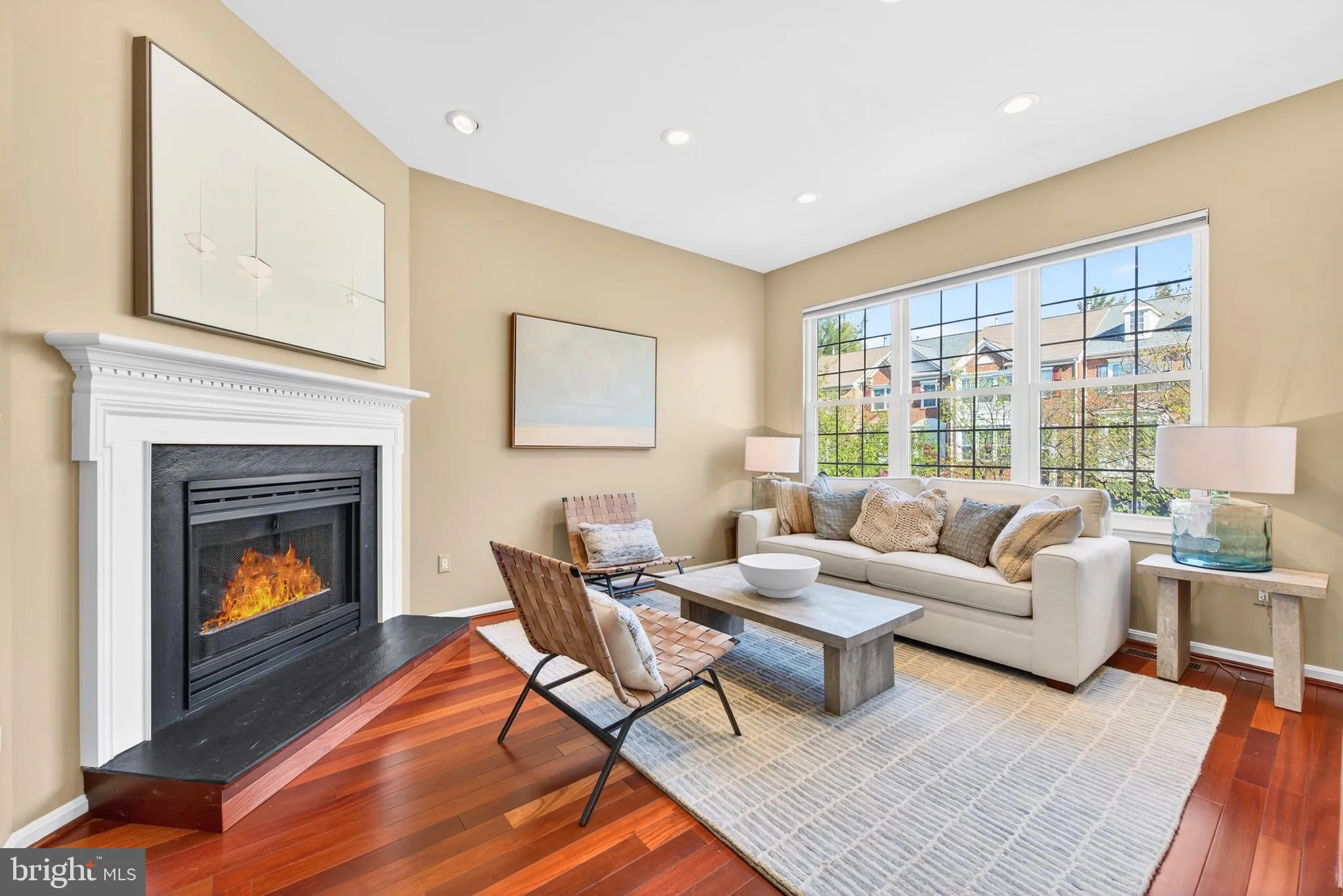 The main level features cherry hardwood floors throughout, with a bright living room centered around a gas fireplace and a convenient po...