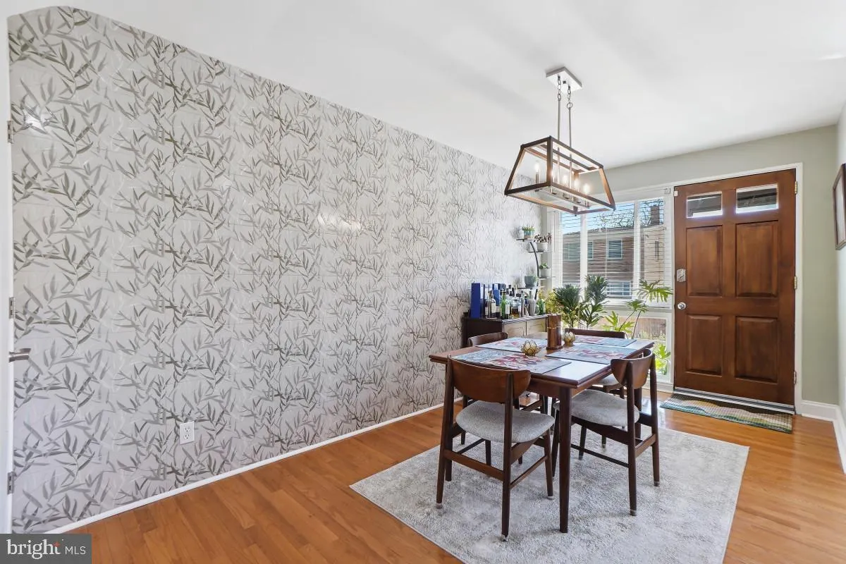 Just off the kitchen, the dining room adds a layer of texture and character that truly sets the tone for the home. It is a space that feels both intimate and design forward, creating the perfect backdrop for hosting. With its seamless connection to the kitchen, entertaining here feels easy, natural, and genuinely fun. The home also has a newly refinished, sizable half bath on the main level, making it even easier to help your guests feel comfortable.
