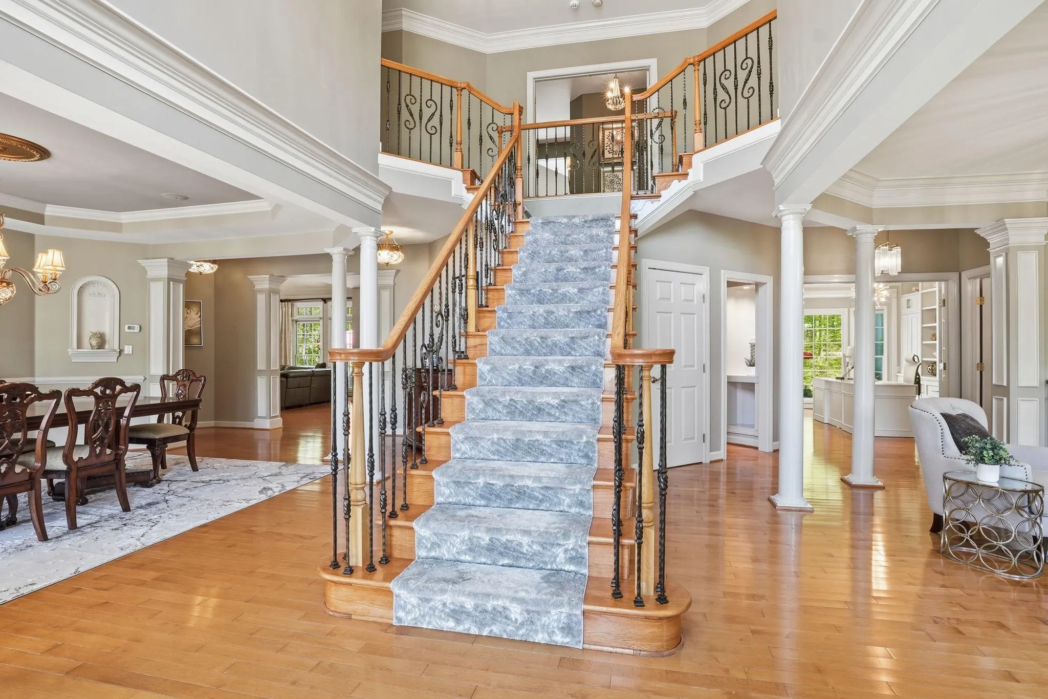 The fully finished lower level is an experience unto itself — a recreation room, wine tasting room, home gym, second full kitchen with bar seating, a bonus flex room perfect for a playroom or additional office, and direct exterior access make this level as functional as it is impressive.