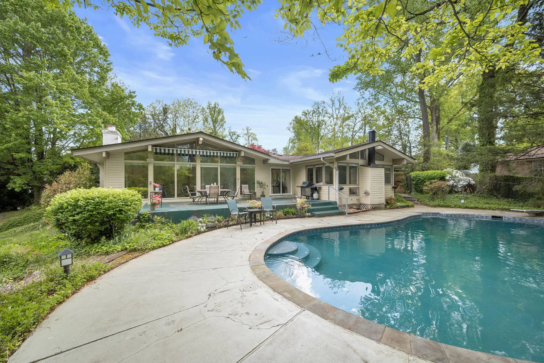 Set on nearly an acre in a quiet cul-de-sac in Bethesda’s highly sought-after Oak Forest neighborhood, this light-filled, California-style contemporary home offers 3 bedrooms and 3.5 bathrooms. The open-concept layout features a modern kitchen, three gas fireplaces, hardwood floors, and abundant skylights that fill the home with natural light. The expansive, private lot is truly exceptional, complete with a circular driveway, pool, tennis court, gazebo, and storage shed—ideal for outdoor entertaining, relaxation, and everyday enjoyment. The spacious primary suite includes a walk-in closet and a serene private outdoor retreat. The walkout finished basement adds valuable living space with a large recreation room, wet bar, laundry area, and generous storage. A two-car garage includes additional storage and is equipped with an electric vehicle charging station. Ideally located inside the Beltway in the Walt Whitman school district, this home offers convenient access to downtown Bethesda, shopping, dining, and Metro, with easy commuting to Washington, DC, Virginia, and major thoroughfares.