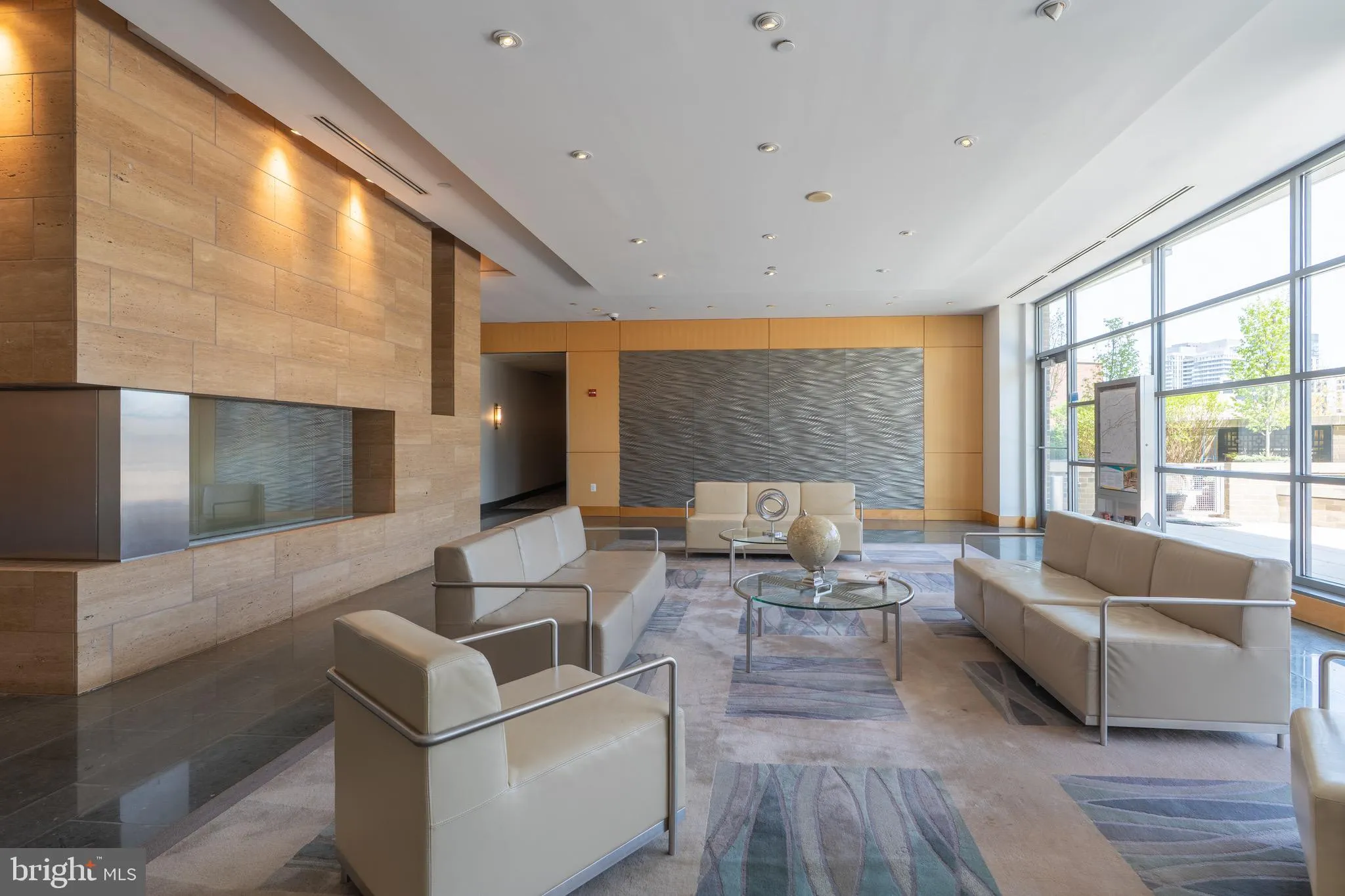 white kitchen back splash tiling, new pendant and overhead lighting as well as the bathroom tile and bath converted to large walk in shower with glass doors, new vanity and mirror and lighting and towel bar completed with large wall and floor tiles and all freshly repainted in a warm, neutral paint scheme, low fee, front desk, garage parking, gym, pool, with some of the best roof top views in NVA, grilling areas, meeting/party rooms and so much more.