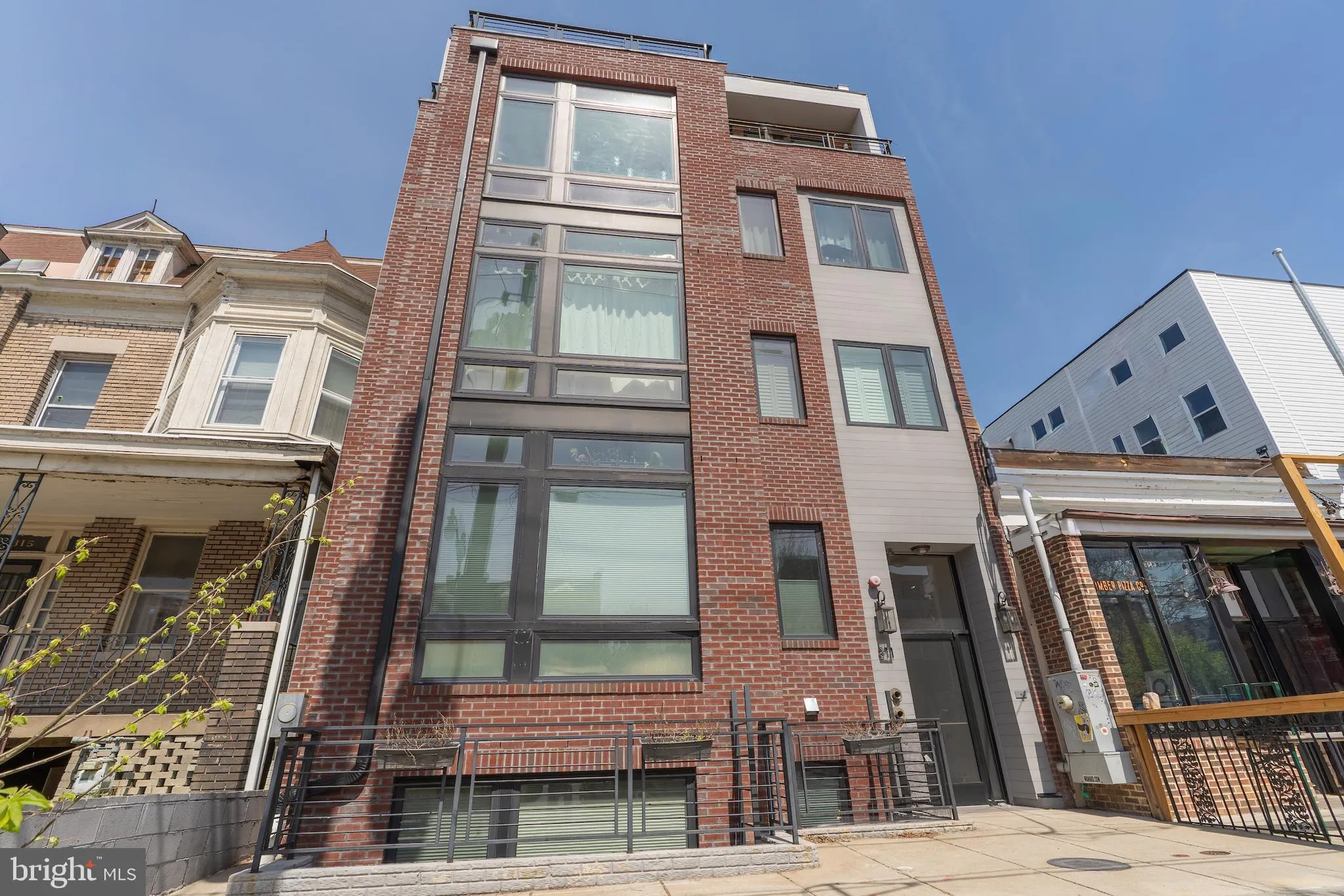 This chic & modern Petworth Penthouse condo features 3BR/2.5BA over two levels, with two private roofdecks, a wetbar, low condo fees, and off-street parking. The first floor has a combination living, dining room with open-concept kitchen. The kitchen features a large island, custom grey cabinetry, subway tiles, and top of the line stainless steel appliances. Two bedrooms and one full bathroom complete the main level. Upstairs is the primary suite, with a private walk-out roofdeck and large spa-like bathroom. Another roofdeck, wetbar and half-bath complete the upper level. The open layout & multiple private roofdecks make this penthouse perfect for entertaining, cooking, and relaxing. Located on vibrant Upshur St, this unit is just steps to restaurants, metro, organic grocery store, and more!