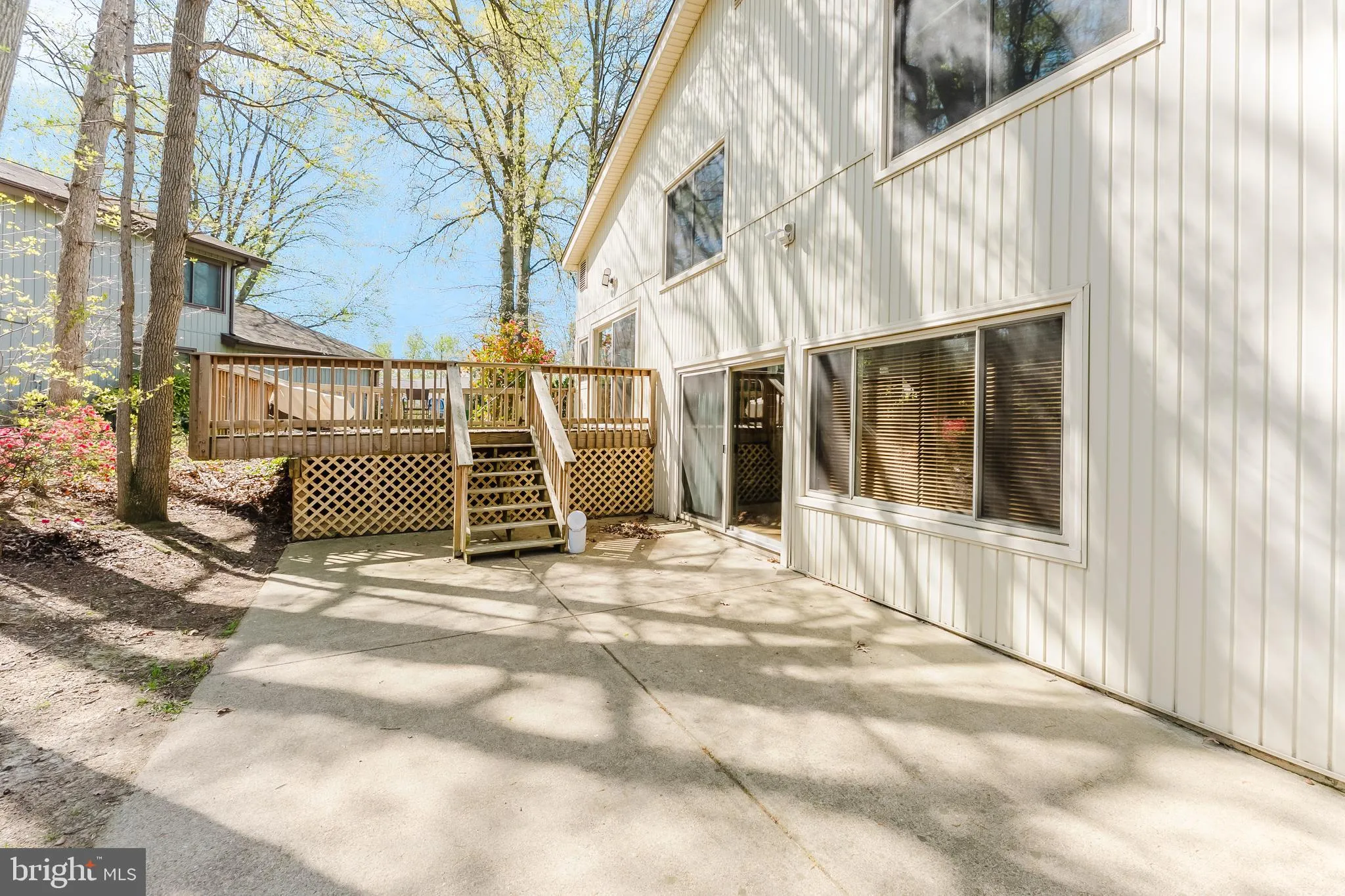 Step inside to soaring vaulted ceilings and an abundance of natural light streaming through skylights in the living room, creating an airy and inviting atmosphere. The main level features elegant marble tile flooring and a seamless flow from the dining area into the kitchen, where maple cabinetry, granite countertops, and stainless steel appliances combine style and function. A bar-height counter provides the perfect spot for casual meals or gathering with friends. Sliding glass doors extend the living space outdoors to an elevated deck overlooking a serene, tree-lined yard.