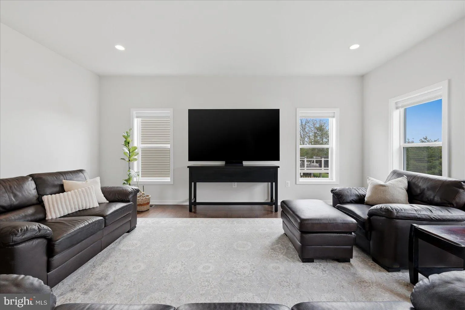 The finished lower level provides additional living space, including a large recreation room, fifth bedroom, third full bath, media room, and ample storage.