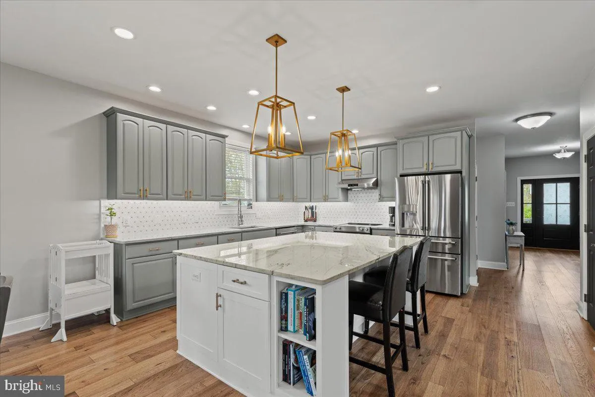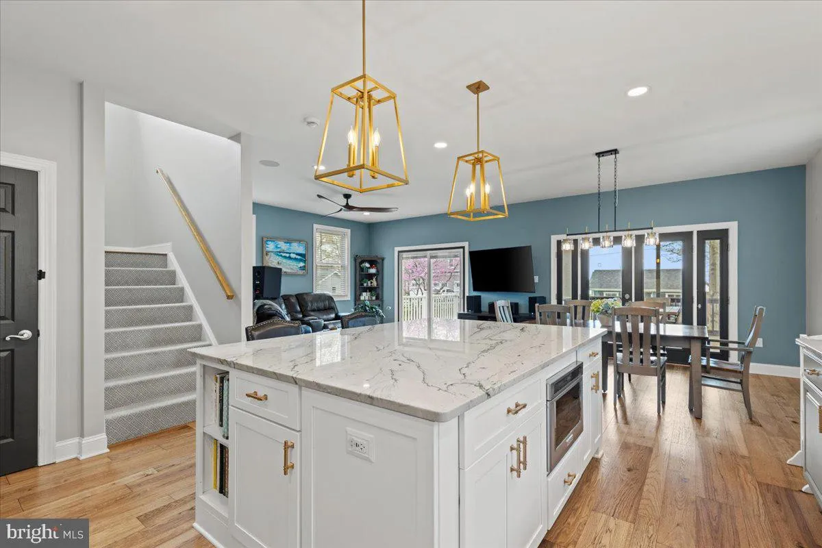 Always wanted to have some water views and live near the Chesapeake Bay? Here is your opportunity! Why settle for a subdivision home when you can peek at the Bay everyday! Holland Point-North Beach Park offers it’s residents a beautiful stretch of land at the waters edge that you can walk on which allows you a front row seat for the morning sunrises, fireworks, watching the wildlife enjoy the water and so much more. This area is restricted to the public. Being on the water side of Walnut Avenue also gives you some lovely views of the water, as there is no house built directly behind your lot and the Bay Front. Now let’s talk about the newly remodeled kitchen with a HUGE quartz island which makes eating and entertaining a pleasure Catch a glimpse of the water .from your family room, screened porch and deck and simply beautiful sun rises from your primary suite over the water. Owners are moving and the living room is ground zero for packing – please excuse the boxes!