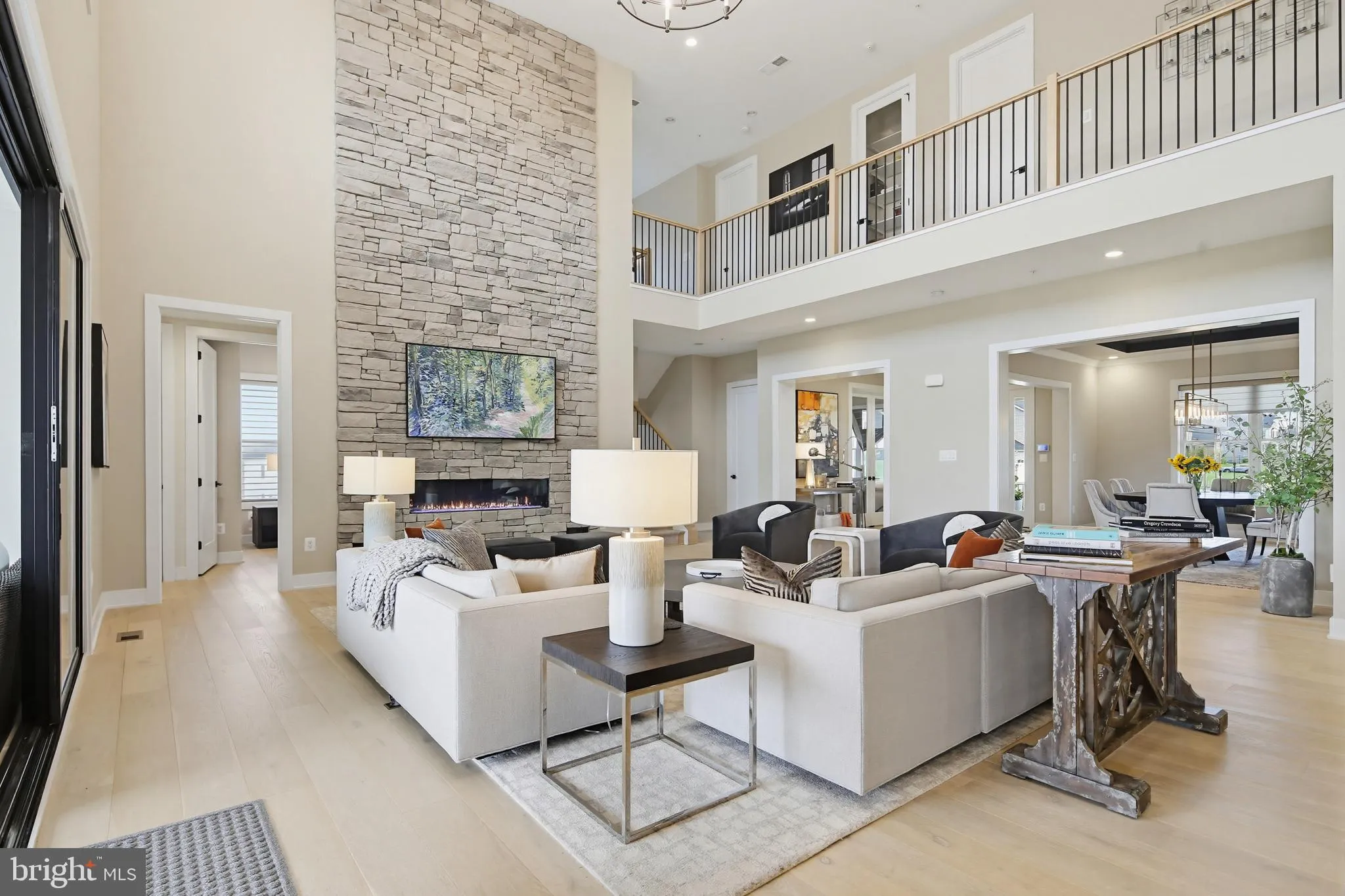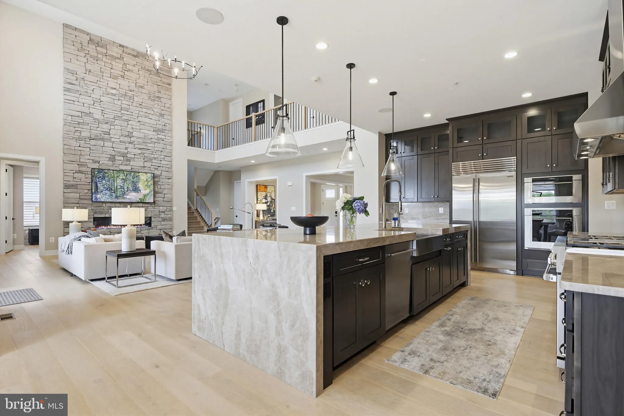 A Rare Offering! Exquisite Craftsmans style estate on 1 acre with sweeping pastoral views. This exceptional four-year-old Toll Brothers built home offers a rare combination of refined design, thoughtful functionality, and elevated indoor-outdoor living—all overlooking breathtaking pastoral scenery. A dramatic two-story great room serves as the heart of the home, highlighted by a floor-to-ceiling stone gas fireplace and expansive windows that frame the serene landscape beyond. The space flows effortlessly into a designer gourmet kitchen featuring quartz countertops, an oversized center island, premium Wolf appliances, and a well-appointed prep kitchen complete with its own refrigerator, sink, dishwasher, and stove. A generous walk-in pantry adds both convenience and storage. The main level is thoughtfully designed to accommodate multigenerational living, offering a private suite with a spacious bedroom, sitting room with wet bar, luxury bath, walk-in closet, and its own dedicated laundry. Elegant details are found throughout, including custom millwork in the formal dining room and private study, along with hardwood flooring spanning throughout most of the home. Upstairs, the primary suite is a sophisticated retreat, showcasing a tray ceiling, private wet bar, and a spa-inspired bath with soaking tub, expansive walk-in shower, and ample closet space. Three additional bedrooms each feature en suite bath, complemented by a conveniently located second-floor laundry room. The fully finished lower level extends the home’s versatility with a sixth bedroom or fitness space and an upgraded wet bar with wine storage, designer tile backsplash, and custom lighting. Outdoor living is truly exceptional. A covered patio, accessed through French sliding doors from the great room, features a second fireplace—perfect for year-round enjoyment. In addition, a separate outdoor kitchen and living area includes a built-in grill, dedicated prep space, and ample room for dining with table and chairs, all perfectly positioned to take in the sweeping pastoral views. Extensive hardscaping, including a paver patio and fire pit, creates an ideal setting for both intimate gatherings and large-scale entertaining. Additional features include a whole-house generator, irrigation system for both front and rear grounds, upgraded lighting throughout, and a six-zone in-ceiling sound system. This is a rare opportunity to own a meticulously upgraded, turnkey residence offering luxury, privacy, and exceptional outdoor living in a truly scenic setting.