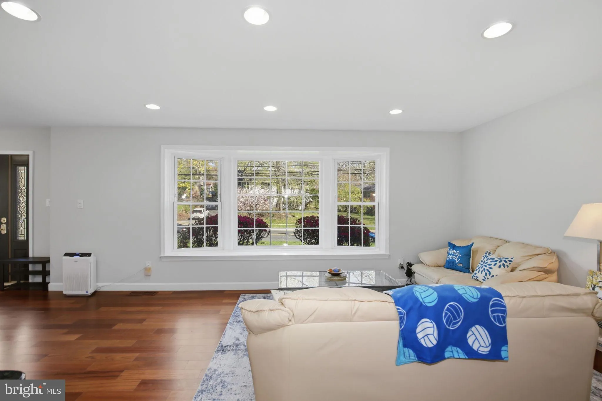 The main level features a spacious and light-filled living room with large windows, seamlessly flowing into a recently upgraded gourmet kitchen. The kitchen is thou...