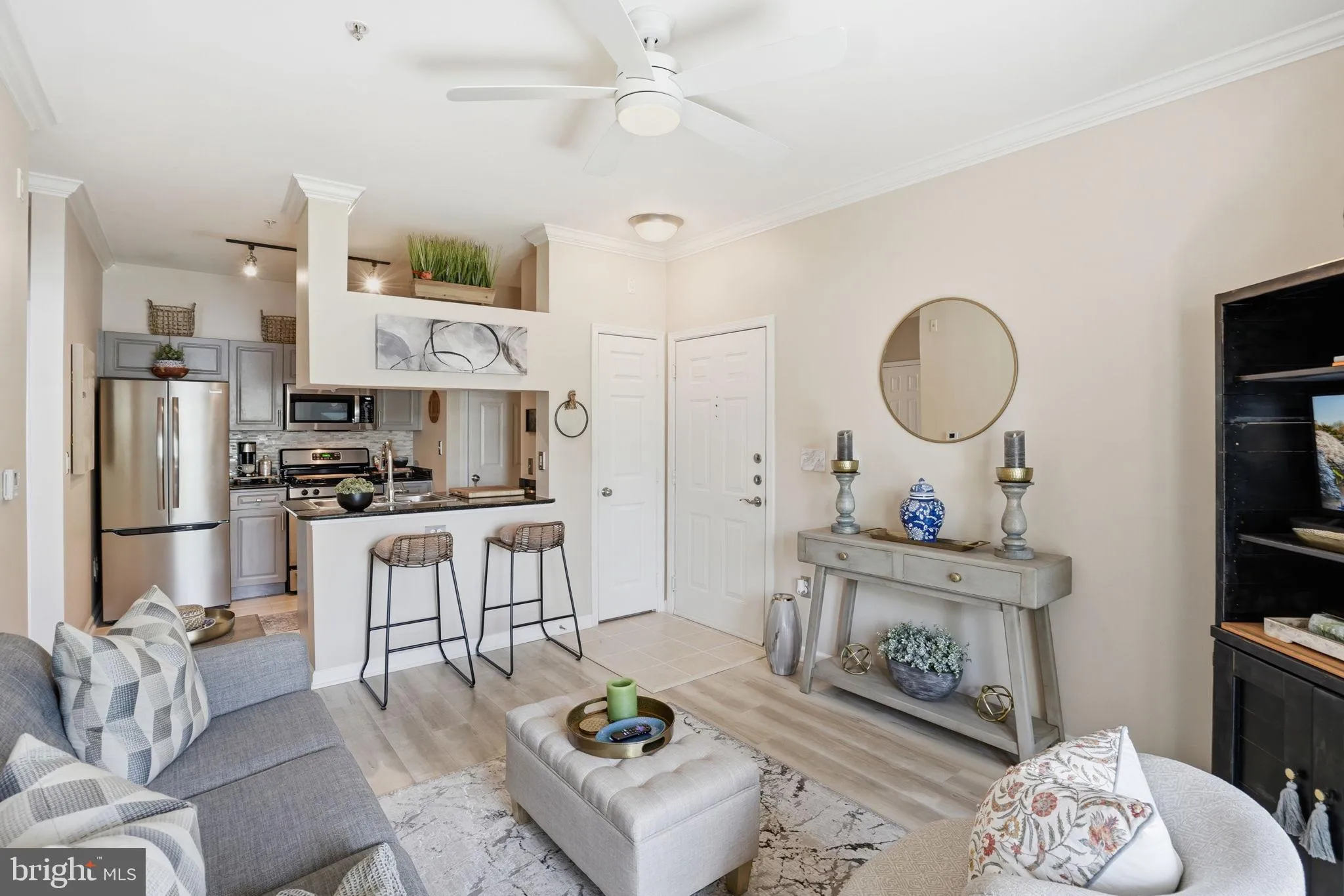 Completely move-in ready and thoughtfully updated, this 1-bedroom, 1-bath condo at Bryson at Woodland Park offers an easy, connected lifestyle in a prime Herndon location near the Herndon-Monroe Metro, Dulles Airport, shopping, dining, and everyday essentials. Inside, the layout feels bright and efficient, with wood floors installed in 2023, fresh paint in 2023, updated window blinds in 2023, and a renovated full bathroom that gives the home a clean, current feel. The kitchen has been refreshed with stainless steel appliances and a modern backsplash added in 2024, creating a space that feels both polished and practical for daily living.