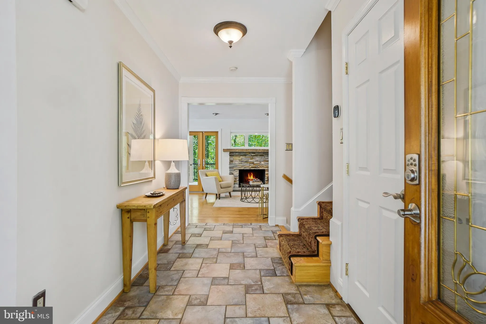 The second level is anchored by an expansive Primary Suite (added in 2002) that blends soaring tray ceilings, hardwood floors, and multiple exposures. The ensuite bath, fully renovated in 2024, features tile floors, a sleek glass shower, double sinks, and luxury fixtures. Two additional bedrooms on this level are finished with hardwood floors and spacious closets, served by a well-appointed hall bath complete with a contemporary glass-enclosed shower and a refined vanity. The top level is dedicated to a flexible fourth bedroom boasting hardwood floors, verdant backyard vistas, and a bonus window that lets in the sun. The lower level is both open and functional, showcasing exposed ceilings, spiral ductwork, vinyl flooring, a brick gas fireplace, and two doors that provide direct access to the rear deck and patio. PLEASE ALSO NOTE THAT ALL WINDOWS IN THE PROPERTY WERE REPLACED IN 2025 (ANDERSON WINDOWS).