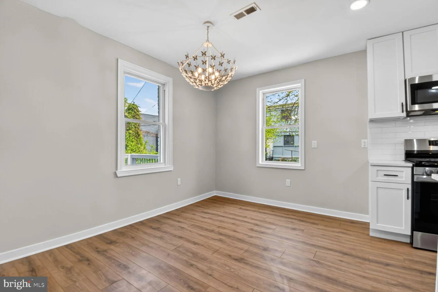 Newly renovated end-unit row home offered at the price of a condo. An additional side windows fill the home with natural light, complementing the open-concept main level. The gourmet kitchen features stainless steel appliances, quartz countertops, a spacious eat-in island, and a pantry, with a separate dining area just off the kitchen.