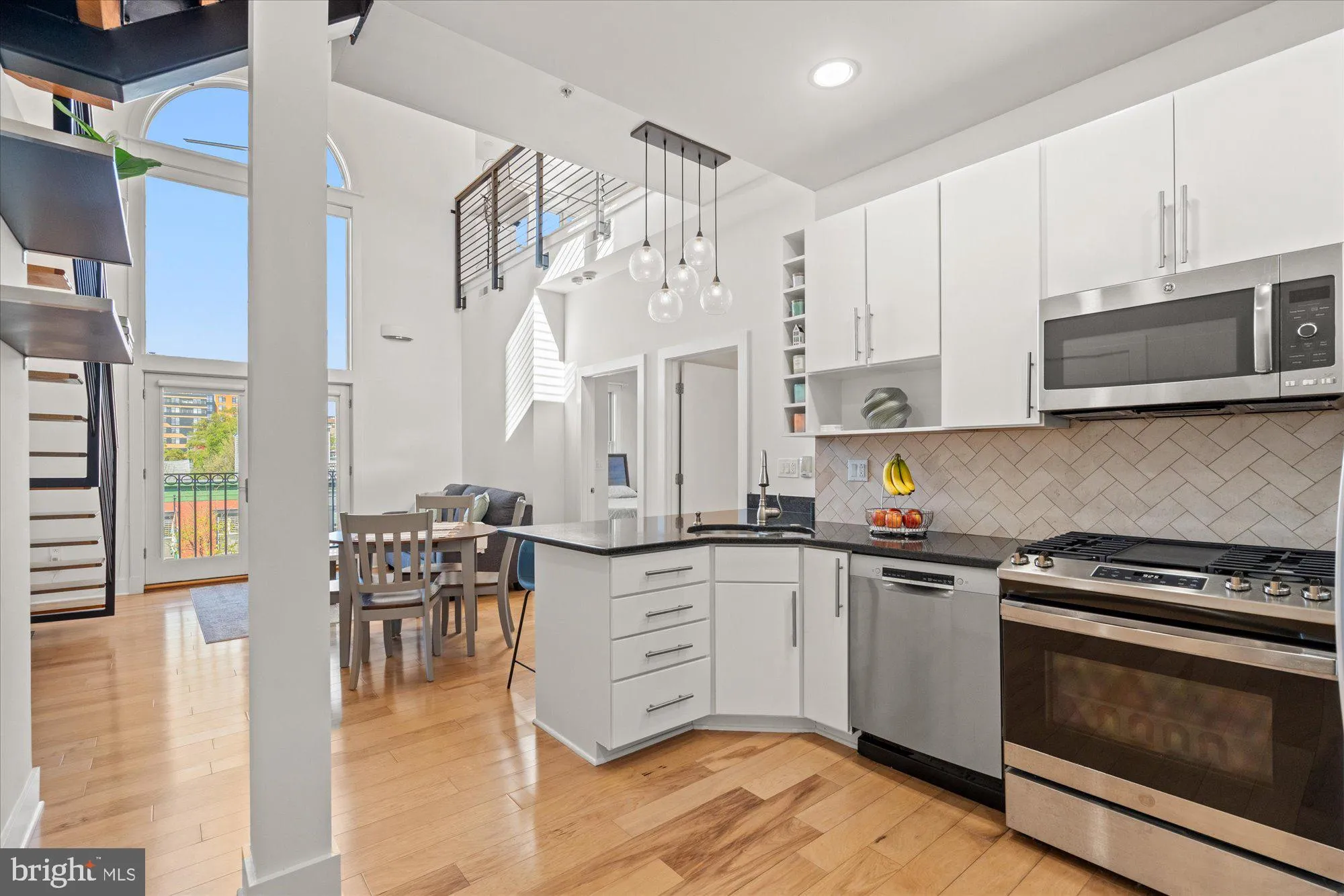 Discover this rare top-floor, corner two-level residence at The Monique Condominium, ideally situated in the heart of vibrant Shaw. Spanning nearly 1,400 square feet, this light-filled loft-style home showcases soaring two-story ceilings and expansive windows that create a bright, open, and airy living environment.