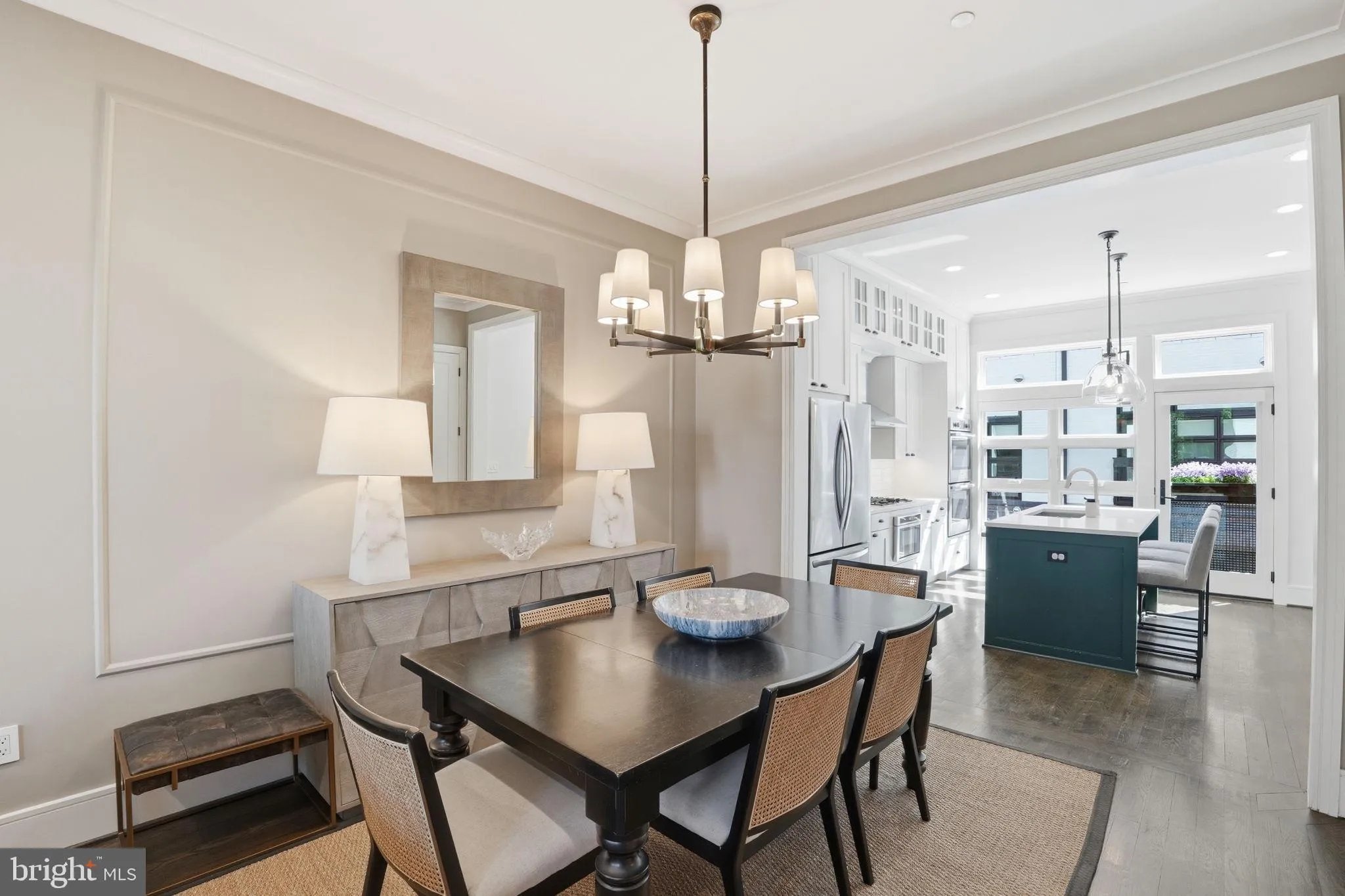 A modern interpretation of a classic brick row home, this interior residence blends timeless architectural details designed by by expert designer, Mariella Cruzado. Stone lintels frame the windows and entry, while inside, high ceilings and crown moldings create a sense of volume and refinement throughout.