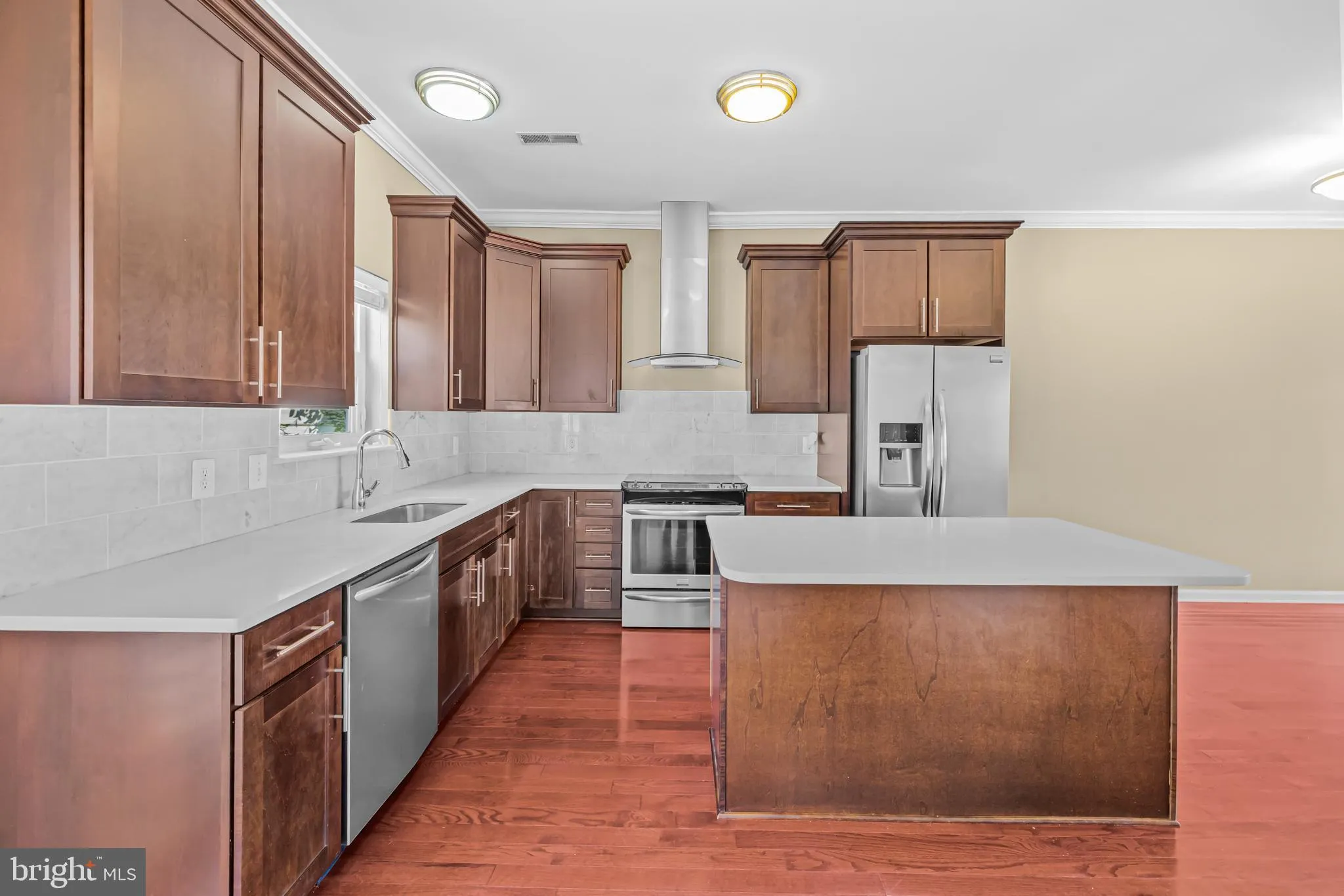 Welcome to this beautifully maintained home in a recently developed enclave offering three levels of refined living with the convenience of Garage Parking. Freshly painted throughout, this spacious 3-bedroom plus DEN, 3 full and 1 half bath residence combines modern finishes with a thoughtful, open layout designed for both everyday comfort and entertaining. The main level features gleaming hardwood floors, a generous living and dining area, and a convenient powder room. Expansive windows fill the space with natural light, creating a bright and inviting atmosphere. The gourmet kitchen is a standout, complete with quartz countertops, stainless steel appliances, a stylish tiled backsplash, abundant cabinetry, a large pantry, and a center island perfect for casual dining or hosting. Just off the kitchen, enjoy easy access to a private deck—ideal for relaxing evenings or outdoor dining. Upstairs, the sunlit primary suite offers a peaceful retreat with an en-suite bath, while two additional well-proportioned bedrooms and a full hall bath provide ample space for family or guests. The fully finished lower level adds exceptional versatility, featuring a den or recreation room that can serve as a fourth bedroom, home office, or flex space, along with an additional full bath. Quick access to major highways, Joint Base Anacostia-Bolling, and downtown Washington, this home offers the perfect blend of comfort, convenience, and community.