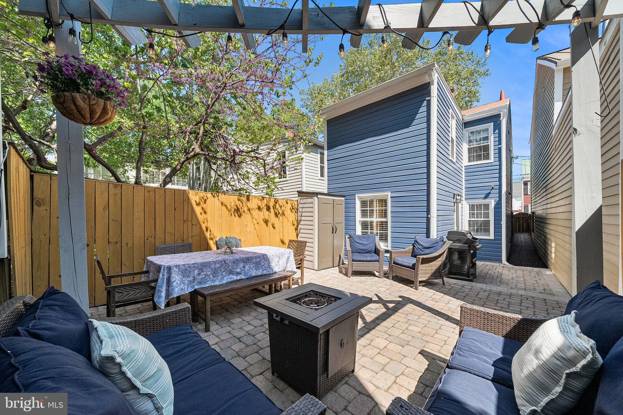 Just 2.5 blocks from the heart of King Street, this rare fully detached home offers the perfect blend of historic charm and modern updates in one of the most walkable locations in Old Town Alexandria. Nestled on a picturesque block, you’ll enjoy easy access to beloved neighborhood restaurants, coffee shops, and boutiques just moments from your door. Inside, the home features THREE bedrooms and one and a half baths, with an exceptionally wide footprint rarely found in Old Town residences, creating a bright and comfortable floor plan. Beautiful teak wood floors run through living and dining rooms. The stunning kitchen renovation (2022) combines timeless design with modern functionality, featuring elegant quartz countertops, classic gray cabinetry, GE Café appliances, a stylish backsplash, and heated tile flooring—creating a warm and sophisticated space for everyday living and entertaining. A renovated powder room, remodeled custom laundry closet with full size washer and dryer and a coat closet complete the main level. At the rear of the home, an expansive private patio provides a true outdoor oasis. Recently enhanced with new stone pavers, a freshly painted pergola with string bistro lighting, and a new privacy fence, the space offers the perfect setting for al fresco dining, entertaining, or simply relaxing in a serene environment. Convenient gated side alley access for bikes, trash cans etc. The upper level showcases original hardwood floors throughout all three bedrooms. One bedroom is highlighted by a vaulted ceiling with beautiful exposed wood beams, adding character and architectural interest. A pull-down attic provides convenient additional storage. Many notable updates since 2021 include: New hot water heater (2026); Full kitchen renovation to include adding heated floor (2022); Full powder room renovation (2021); Laundry cabinet remodel with new washer/dryer (2022); Full outdoor patio remodel with new pavers, painted pergola and new fence (2025); New front door (2022); New exterior siding (75% is new) and brick front stoop (2025); New interior (2022) and exterior (2025) light fixtures; New main level shutters (2021). Easy street parking!! Just 0.6 miles to BOTH King St Metro and Braddock Rd Metro making for easy commuting into DC. Stroll the to Potomac River or GW Bike trail. Incredible one-of-a-kind opportunity in Old Town!!