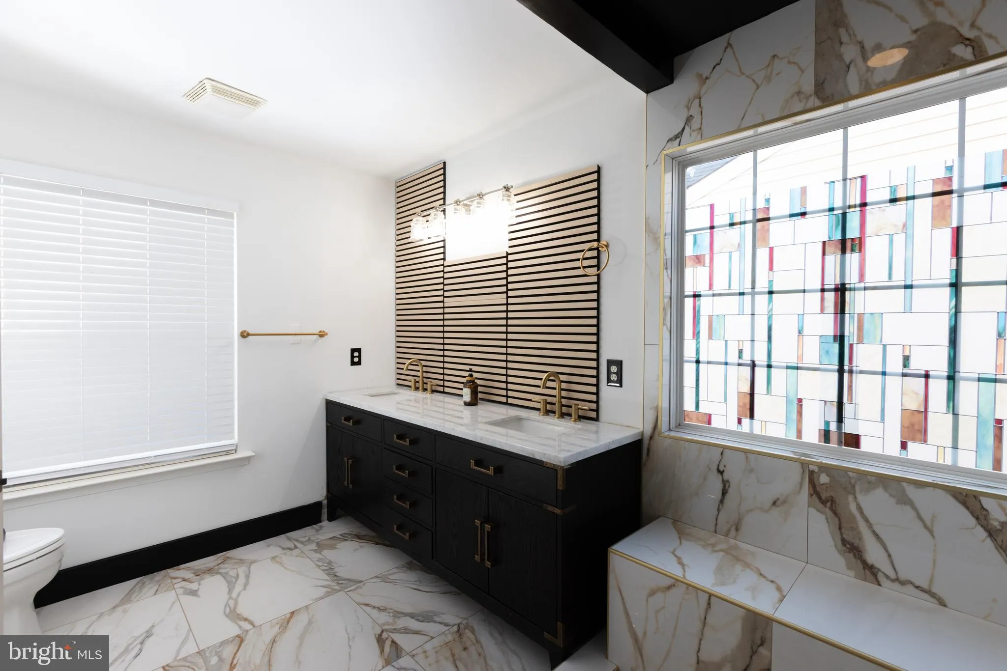 Upstairs, the generous primary suite serves as a private retreat, complete with dual walk-in closets and a spa-inspired ensuite bath featuring a modern walk-in shower and double vanity. A bay window enhances the space with natural light and scenic panoramic views.