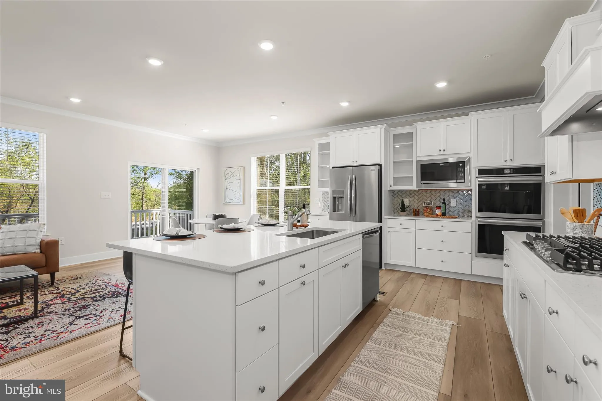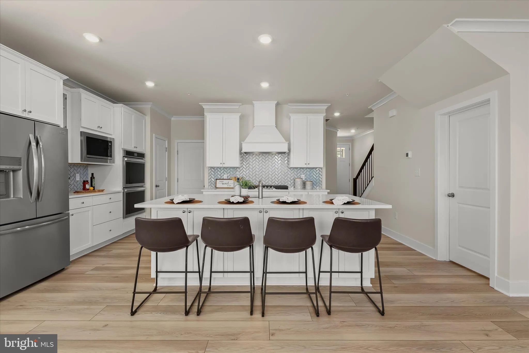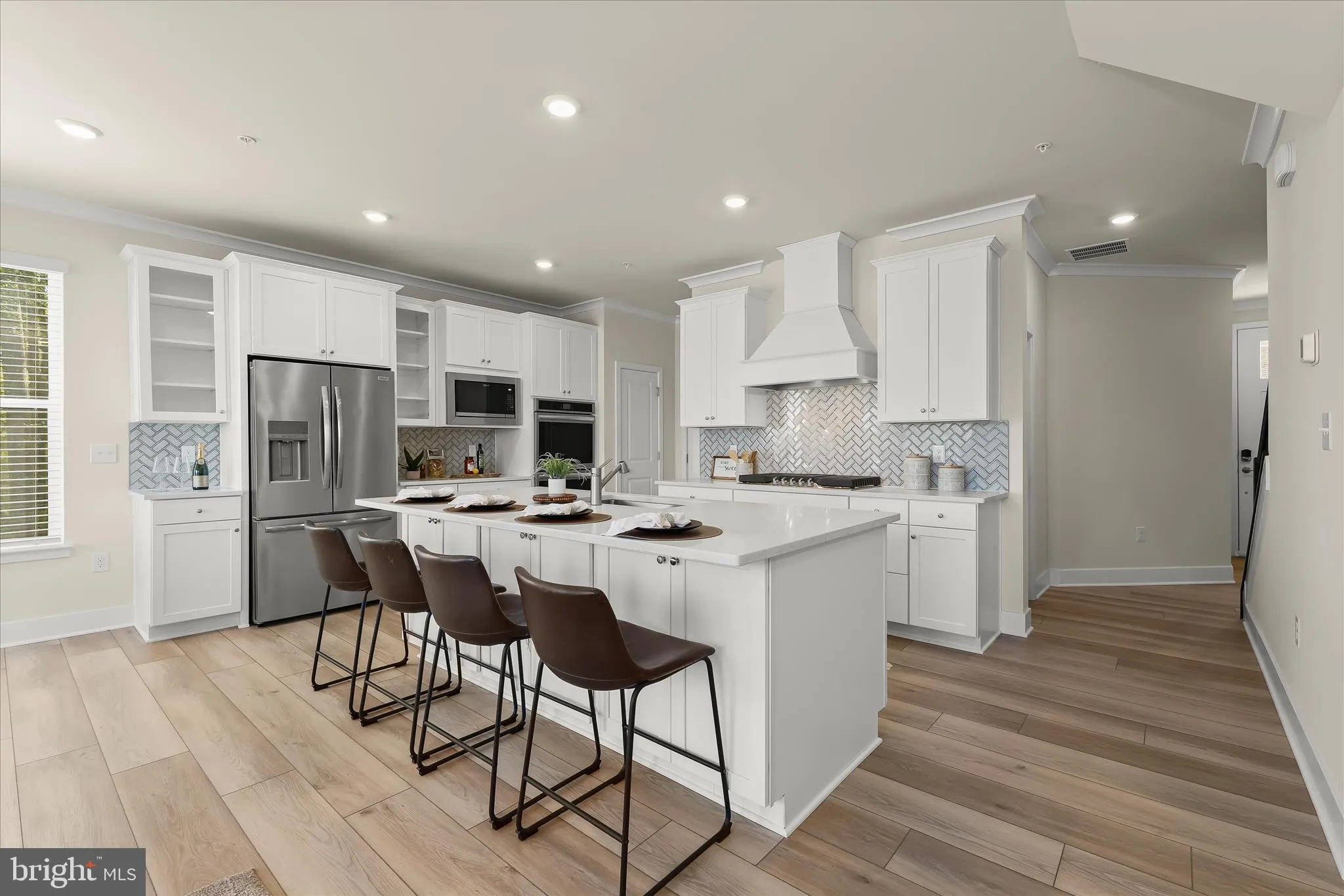 Welcome to 11809 Summer Woods Place in Marriottsville’s hottest new community – Chapelgate Woods. Built in 2024, this like-new end-of-group 4-level townhome is loaded with premium upgrades and completely move-in ready. Enjoy striking wide-plank LVP flooring and a neutral color palette throughout the open-concept main level. The on-trend kitchen feels bright and airy with white shaker-style cabinetry, stainless steel appliances, a double oven, five-burner cooktop, and quartz countertops. The deck off the living room provides the perfect place for morning coffee or evening cocktails. A coat closet, pantry, and half-bath complete the main level.