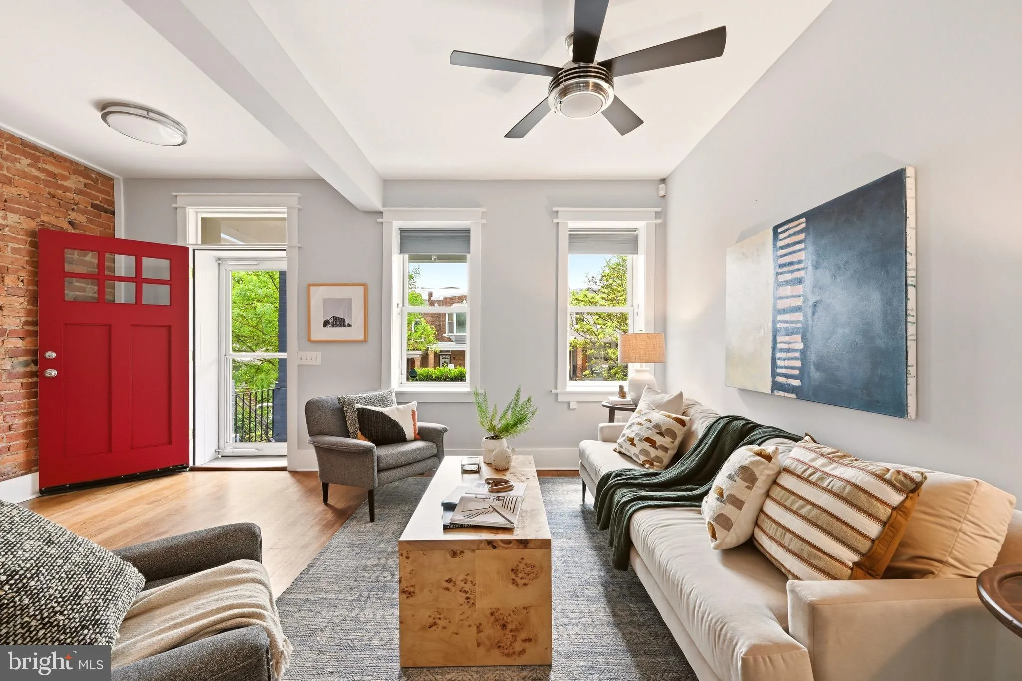 Inside, classic texture and everyday function come together in all the right ways. Hardwood floors run through the main level, while a striking stretch of exposed brick brings depth and charm to the space. The living room opens naturally into a true separate dining room, which is increasingly hard to find and makes the home live larger than so many cookie-cutter layouts. It is easy to picture the general rhythm of real life unfolding here with ease.