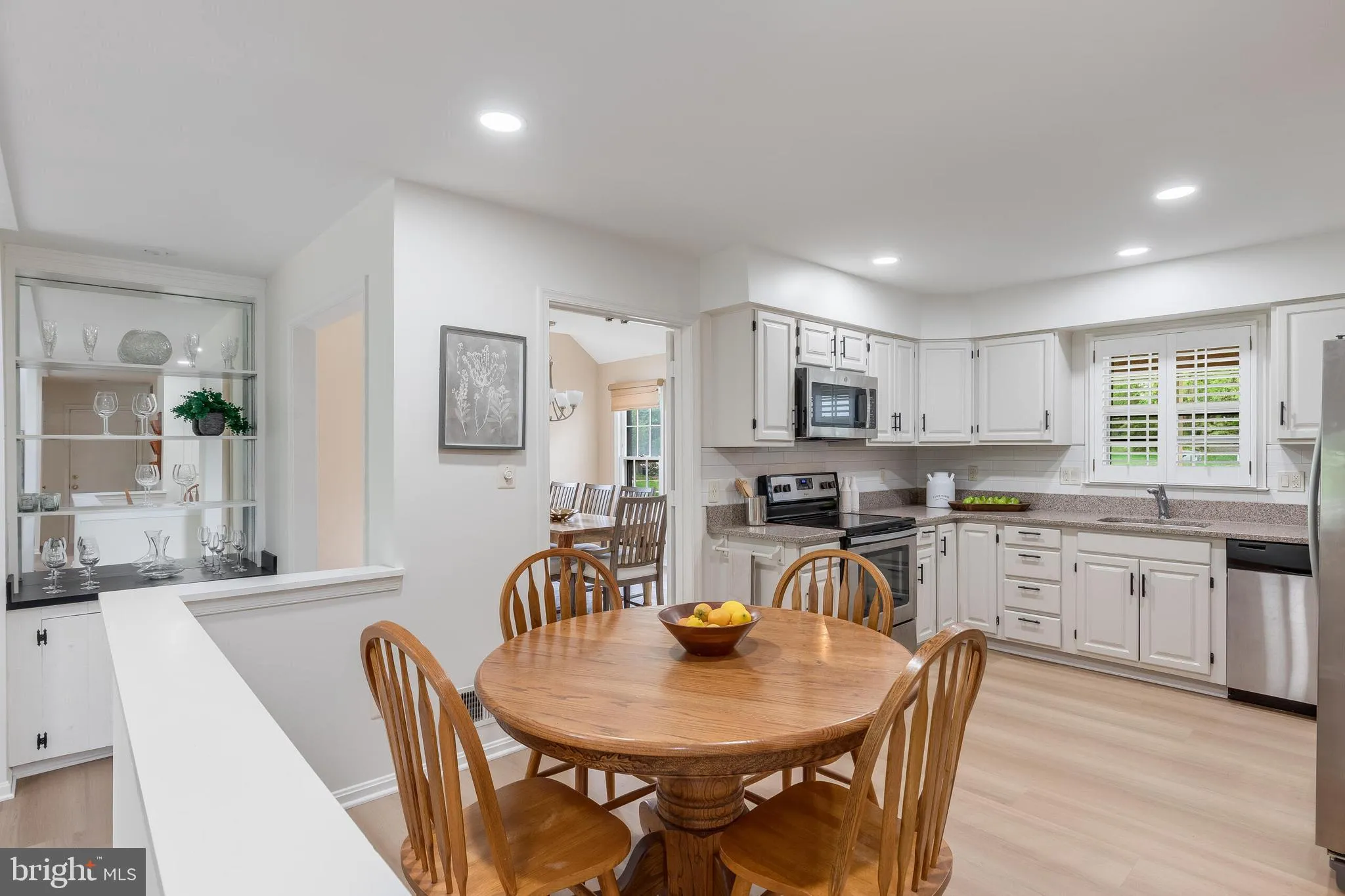 The main level features soaring ceilings, abundant natural light, and an inviting open floor plan ideal for both everyday living and entertaining. The bright eat-in kitchen has been tastefully updated with beautiful cabinetry, ample storage, and granite countertops. Adjacent living spaces include a spacious family room with high ceilings, anchored by a cozy fireplace and seamless access to the expansive, recently updated deck overlooking the fully fenced backyard. Brand new wide-plank flooring flows throughout the home, complemented by fresh, modern paint that enhances the bright and welcoming feel.