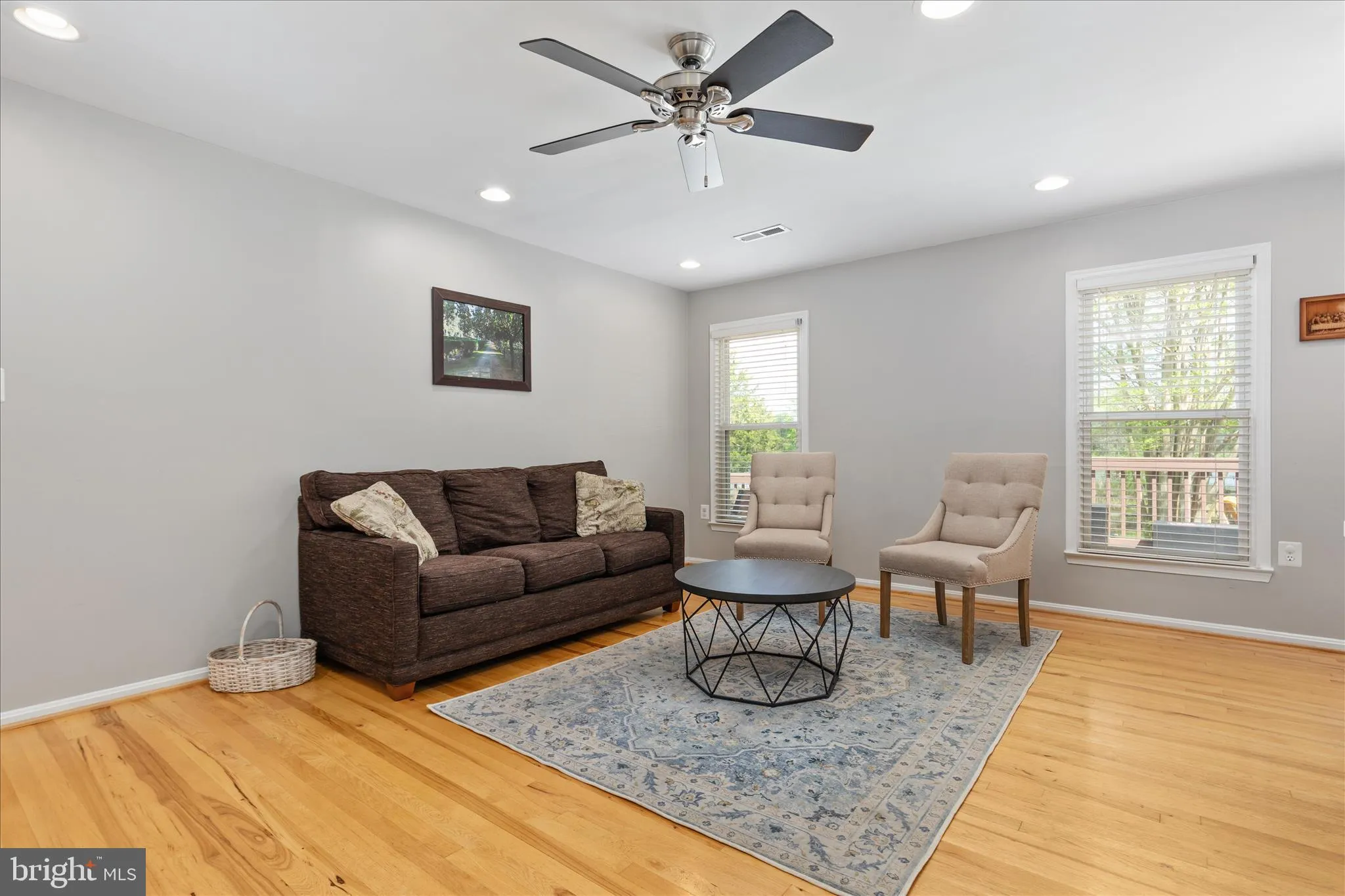 Inside, you’ll find a bright and open layout with a tiled entry, Tennessee Hickory hardwood floors, recessed lighting, and oversized windows that bring in natural light and showcase the scenic surroundings. The kitchen is designed for both everyday living and entertaining, featuring stainless steel appliances, a large center island, and an easy flow into the dining and living spaces. A newly updated built-in cabinet bar adds extra storage and function, while both bathrooms have been thoughtfully renovated with custom tile finishes. A new HVAC system installed in 2024 and a roof replaced in 2019 add even more peace of mind.