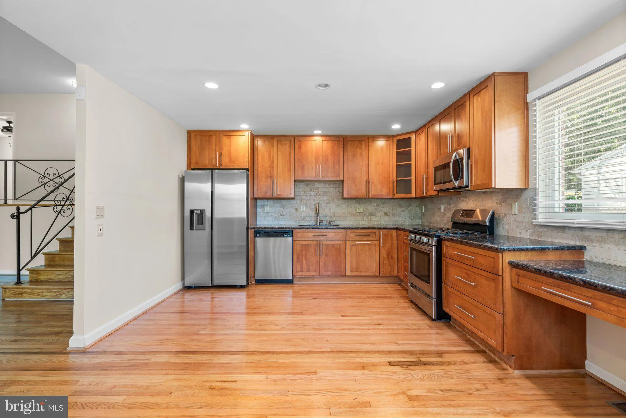 Step inside to be greeted by a stunning open main level with gleaming hardwood floors that flow throughout. The spectacular kitchen is a chef’s delight, featuring elegant wood cabinets, granite countertops, and sleek stainless steel appliances. Just off the living area, a charming sunroom with exposed brick walls provides a cozy retreat, perfect for enjoying your morning coffee or unwinding with a good book. ****